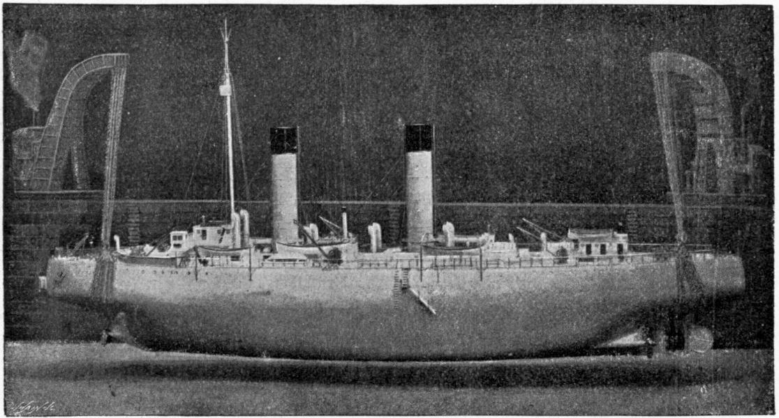 tänker sig ett skeppsskrof af stål, 305 fot långt, 71