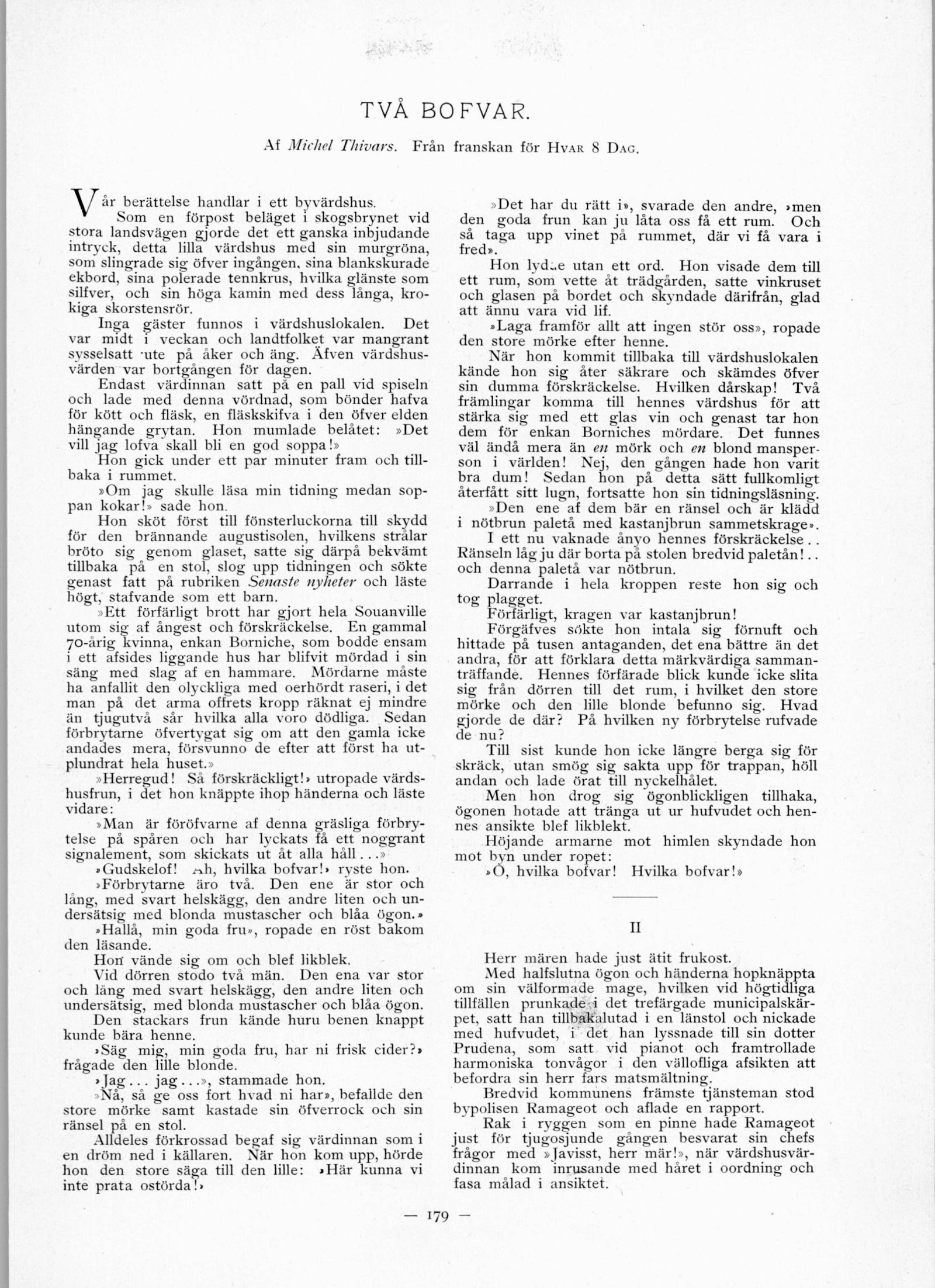 Af Michel Thivars. Från franskan för Hvar 8 Dag.