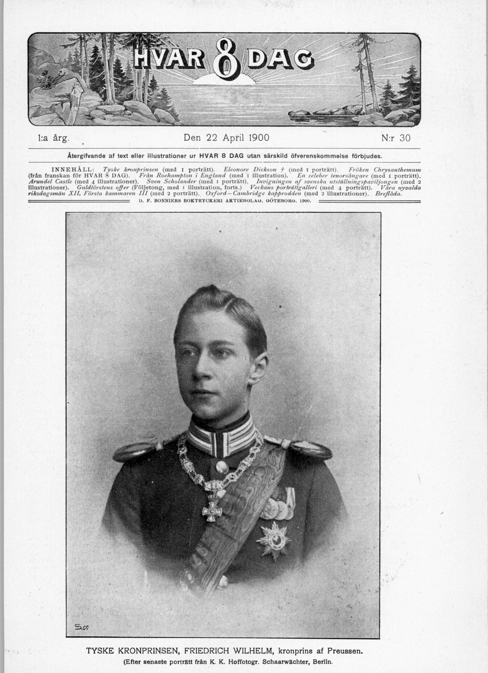 INNEHÅLL: Tyske kronprinsen (med I porträtt). Eleonore Dickson f (med i porträtt). Fröken Chrysanthemum
