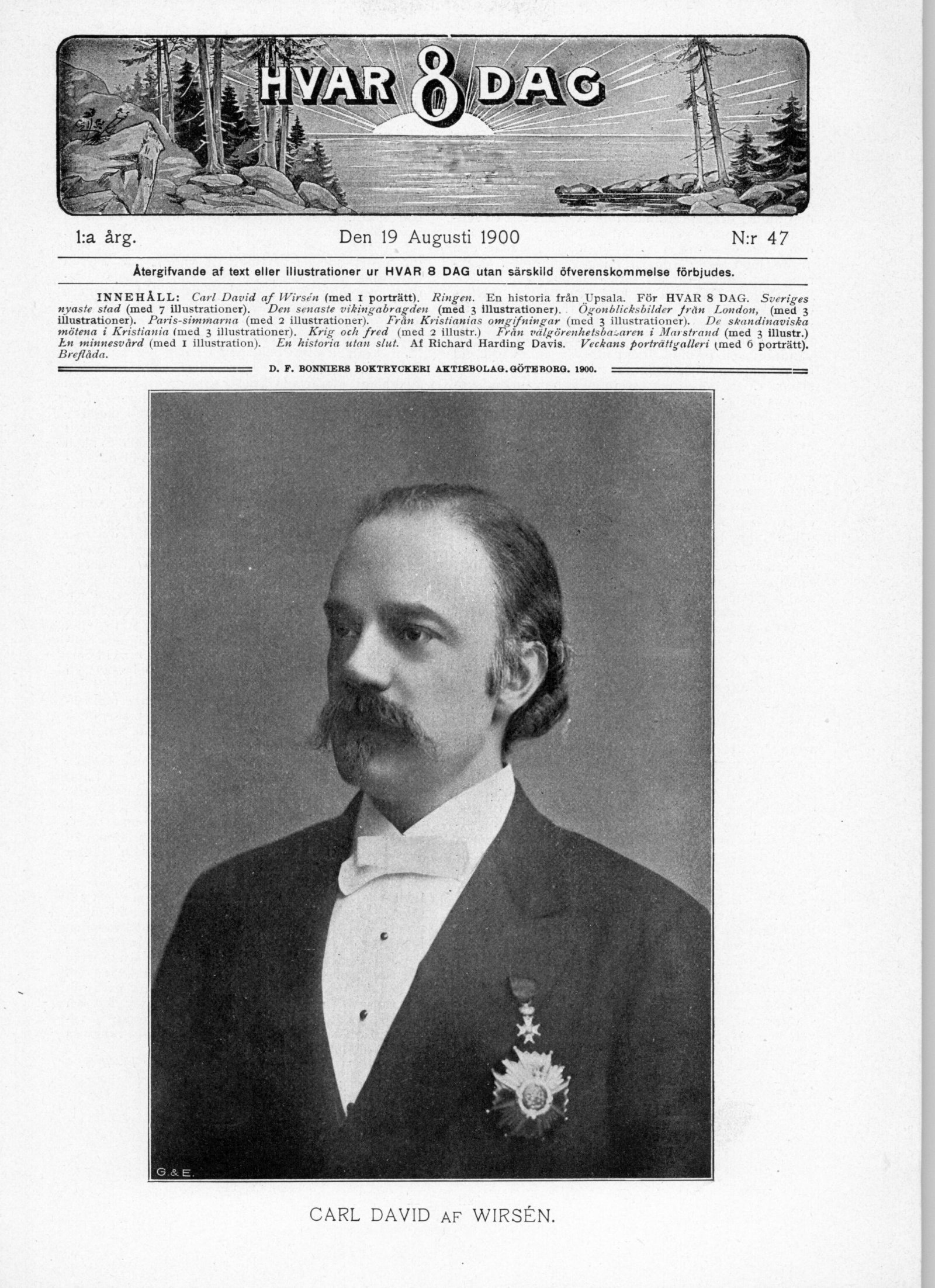 INNEHÅLL: Carl David af IVirsén (med I porträtt). Ringen. En historia från TJpsala. För HVAR 8 DAG. Sveriges