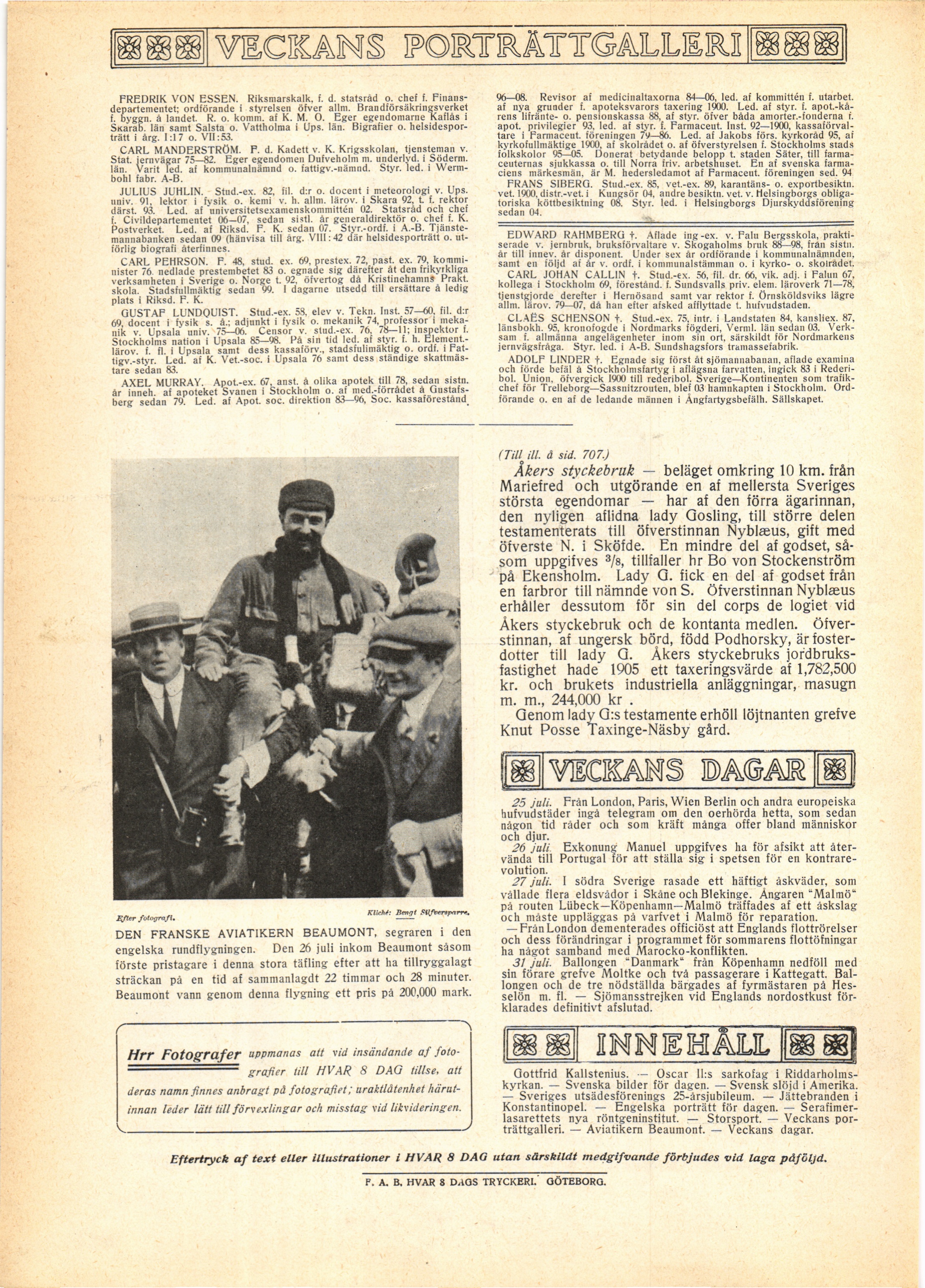 Eftertryck af text eller illustrationer i HVAR 8 DAG utan särskildt medgifvande förbjudes vid laga påföljd.