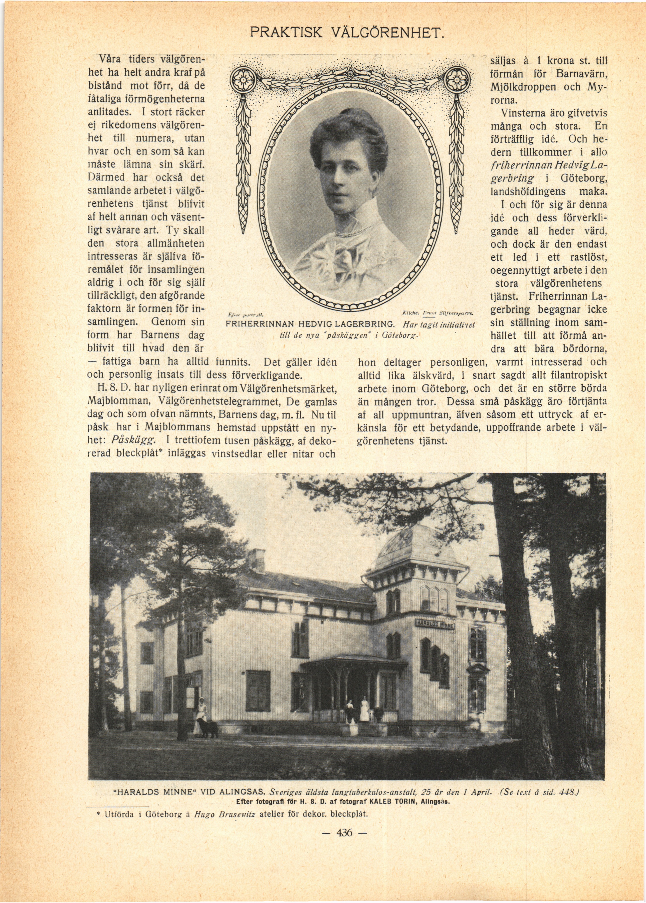 "HARALDS MINNE" VID ALINGSAS, Sveriges äldsta lungtuberkulos-anstalt, 25 är den 1 April. (Se text å sid. 448.)