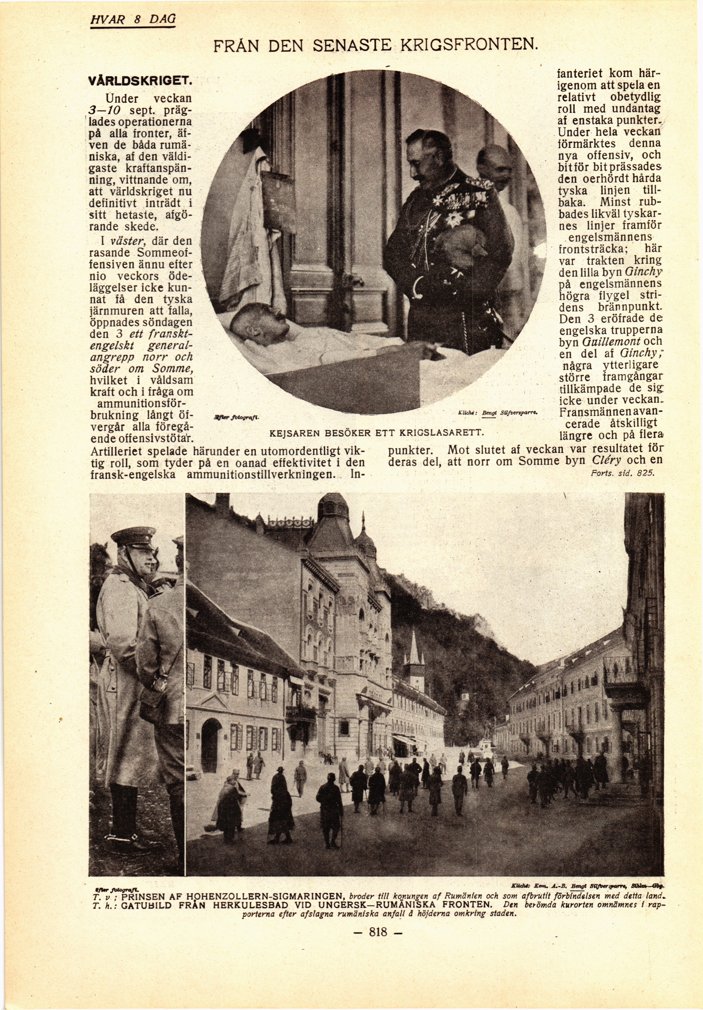 T. h.: GATUBILD FRÅN HERKULESBAD VID UNGERSK—RUMÄNISKA FRONTEN. Den berömda kurorten omnämnes i