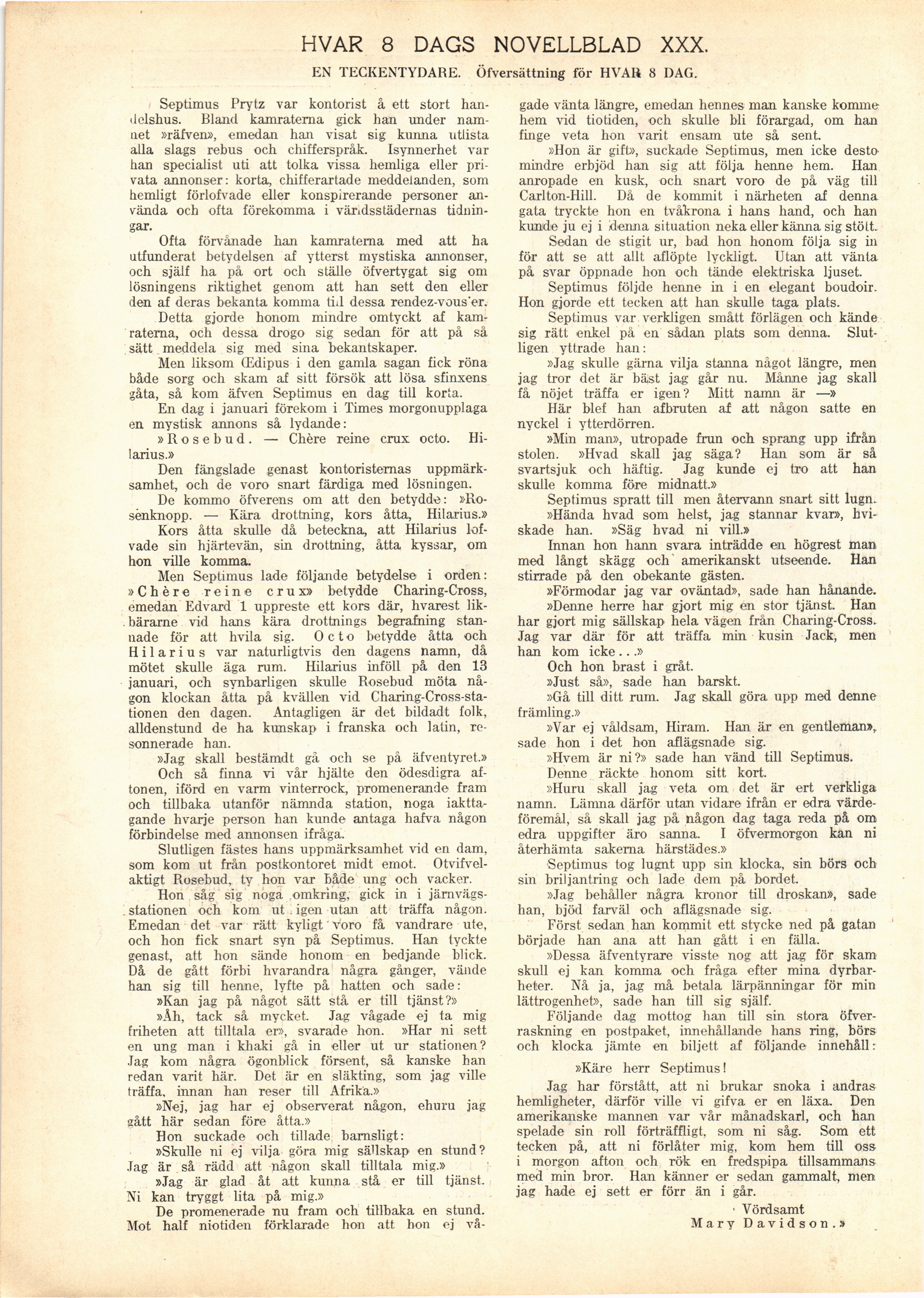 Full resolution (JPEG) - On this page / på denna sida - N:o 15. Den 11 Januari 1903 - HVAR 8 DAGS Novellblad. XXX: En teckentydare
