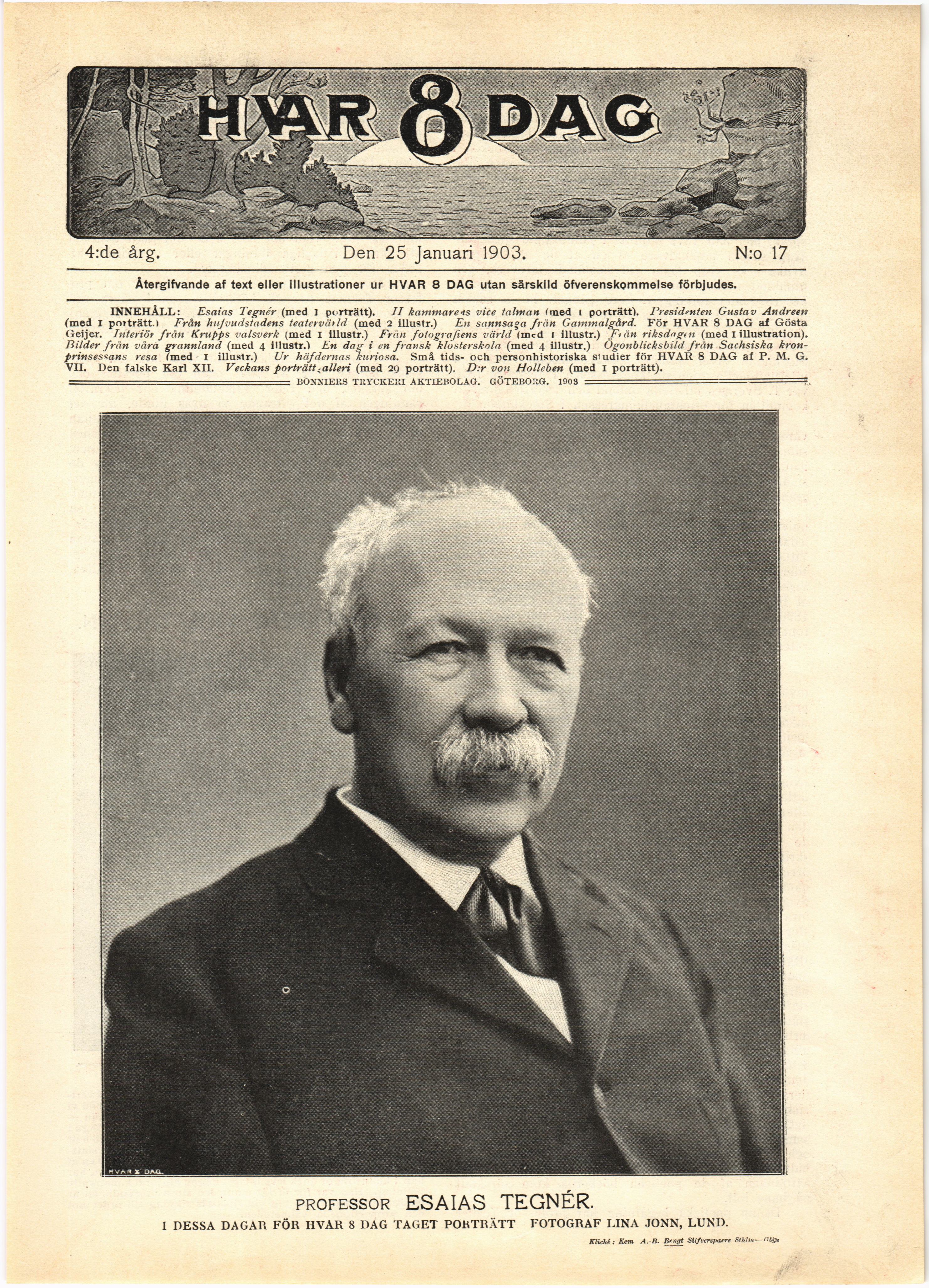 Full resolution (JPEG) - On this page / på denna sida - N:o 17. Den 25 Januari 1903 - Esaias Tegnér