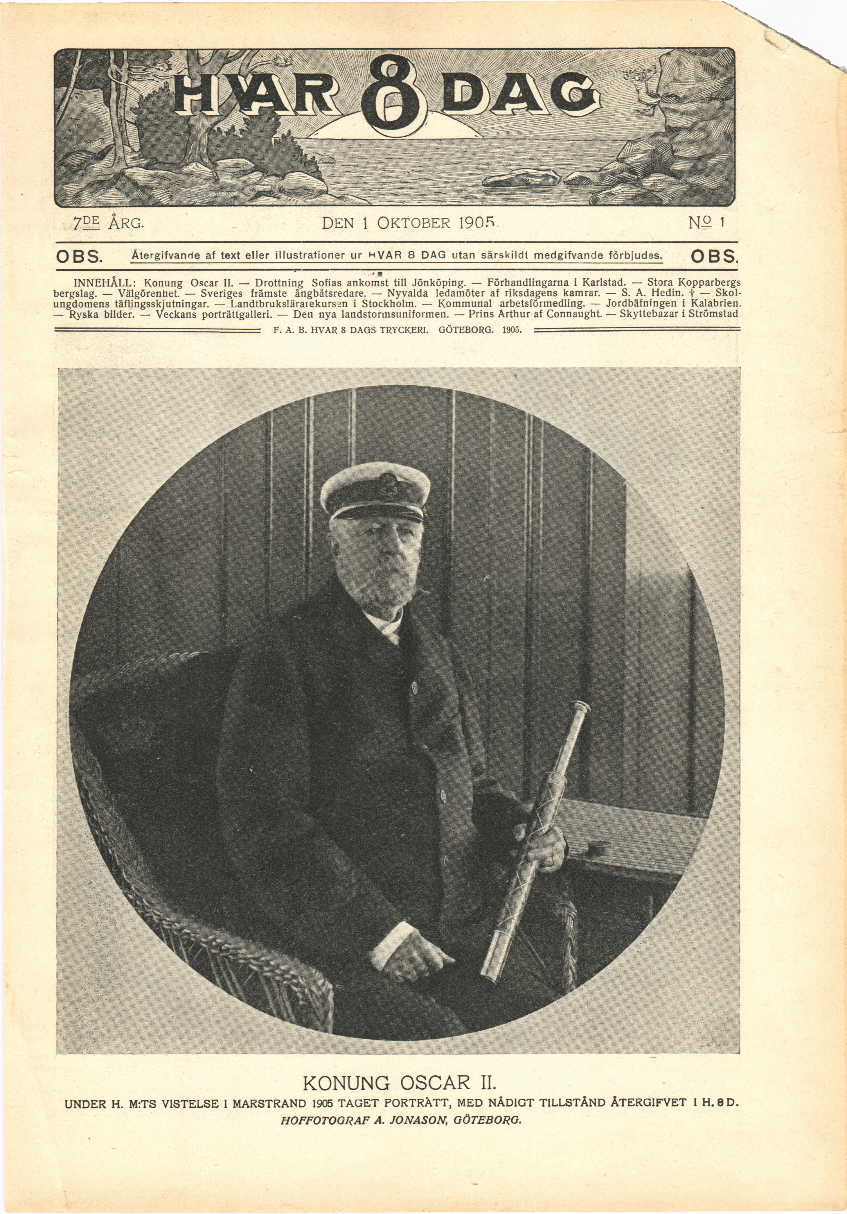 Full resolution (JPEG) - On this page / på denna sida - N:o 1. Den 1 Oktober 1905 - Konung Oscar II