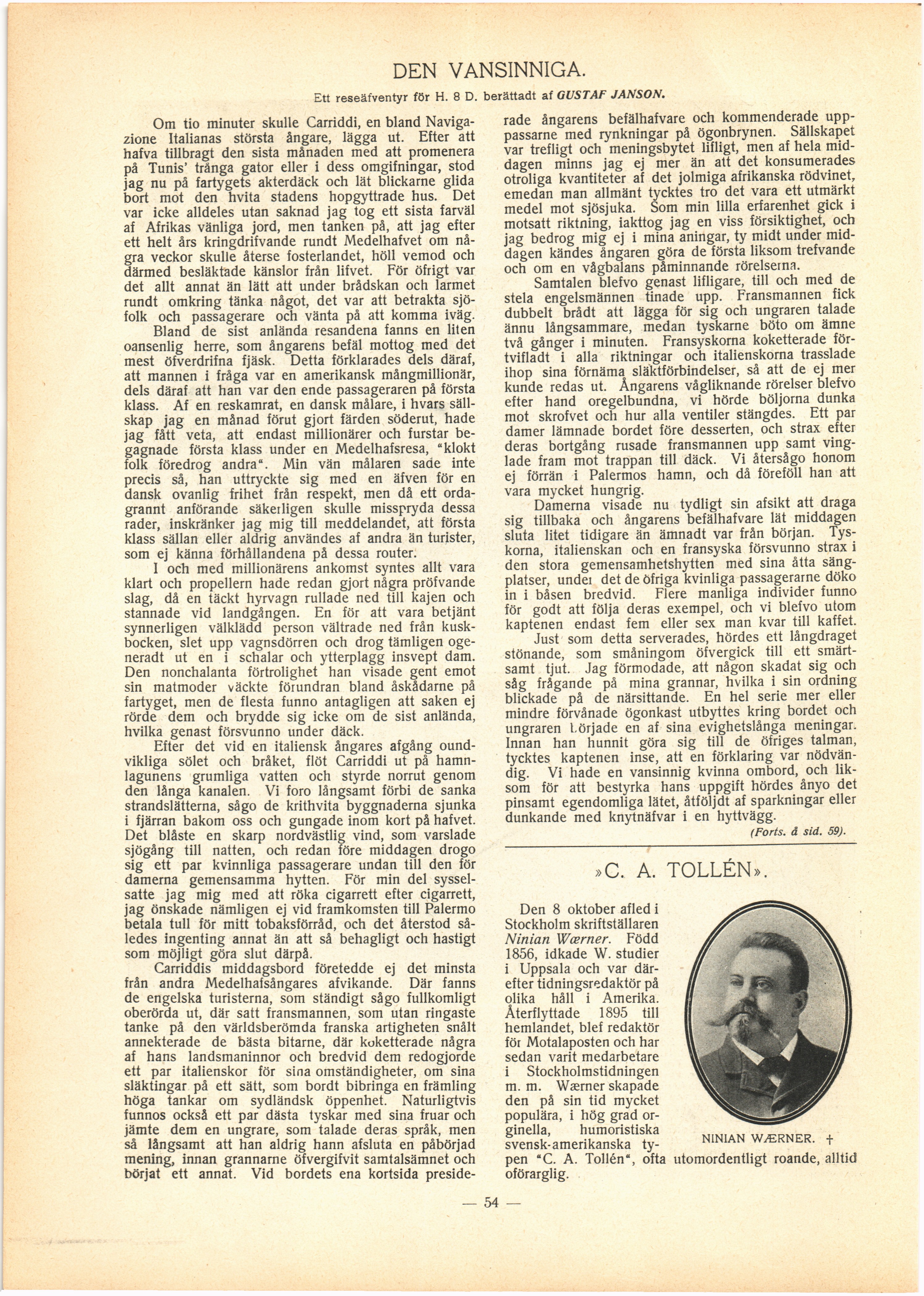 Full resolution (JPEG) - On this page / på denna sida - N:o 4. Den 22 Oktober 1905 - »Den vansinniga» af Gustaf Janson - »C. A. Tollén»
