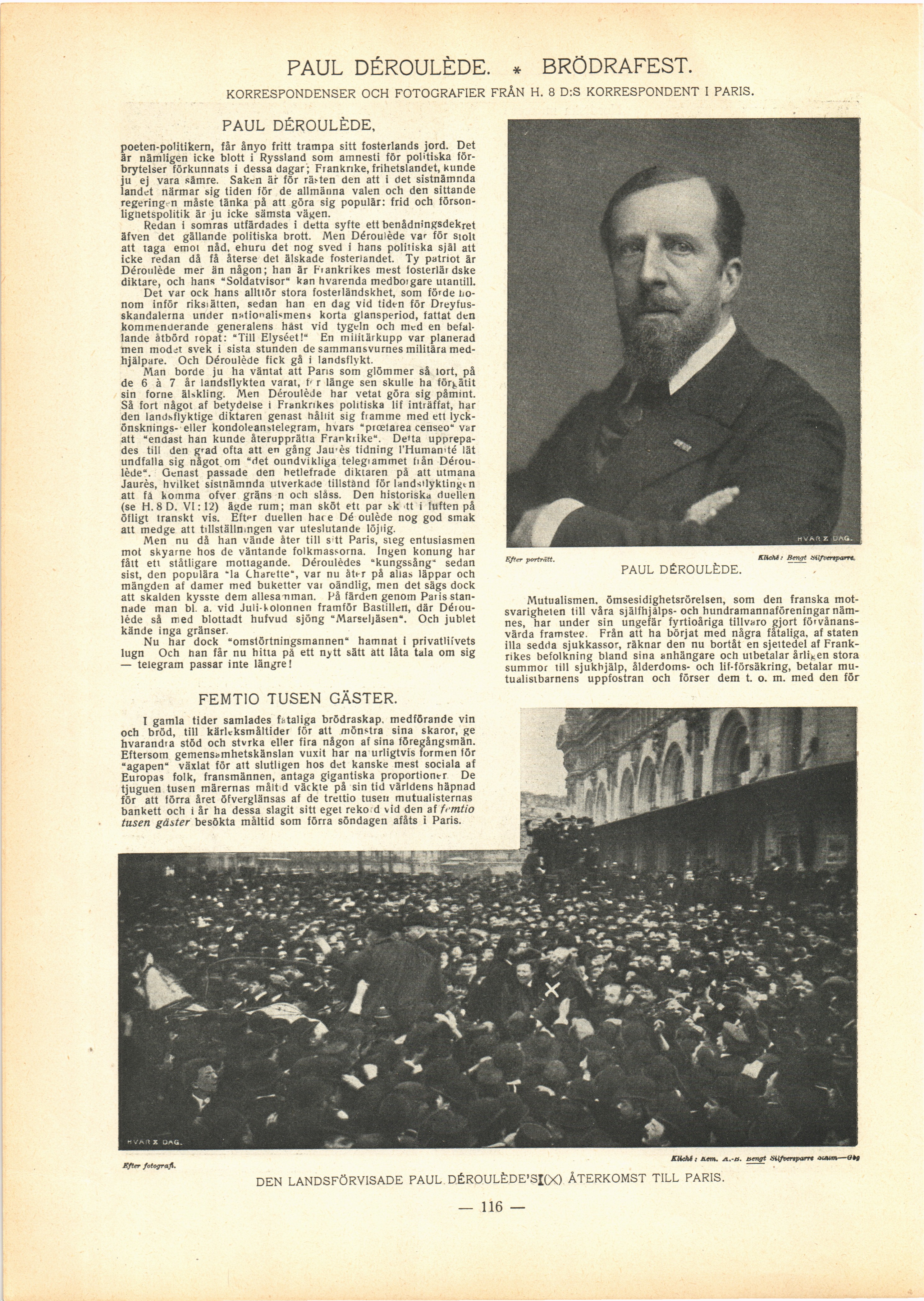 Full resolution (JPEG) - On this page / på denna sida - N:o 8. Den 19 November 1905 - Paul Déroulède - Brödrafest