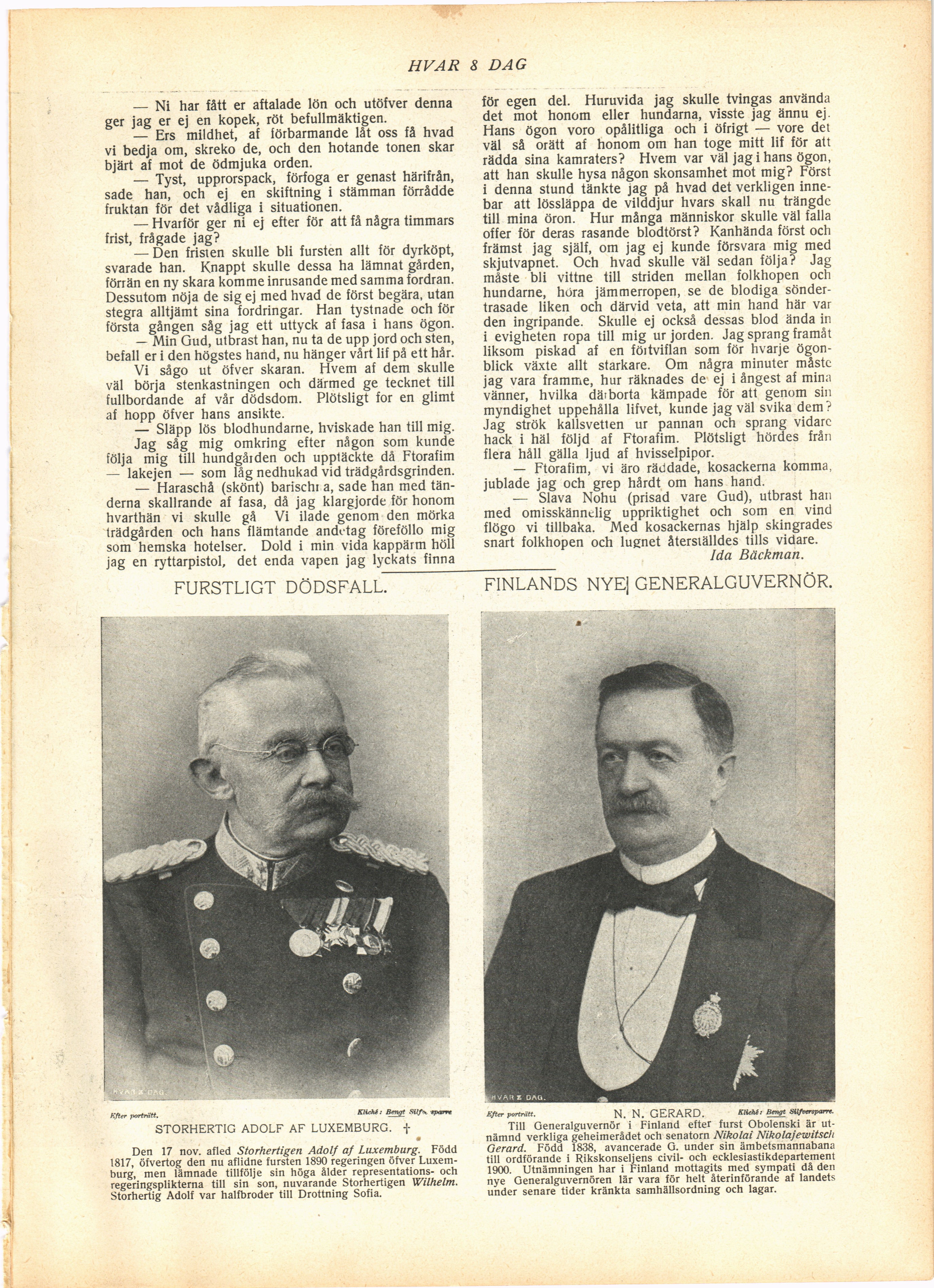 Full resolution (JPEG) - On this page / på denna sida - N:o 10. Den 3 December 1905 - Ett bondeuppror i Ryssland. Af Ida Bäckman - Furstligt dödsfall - Finlands nye generalguvernör