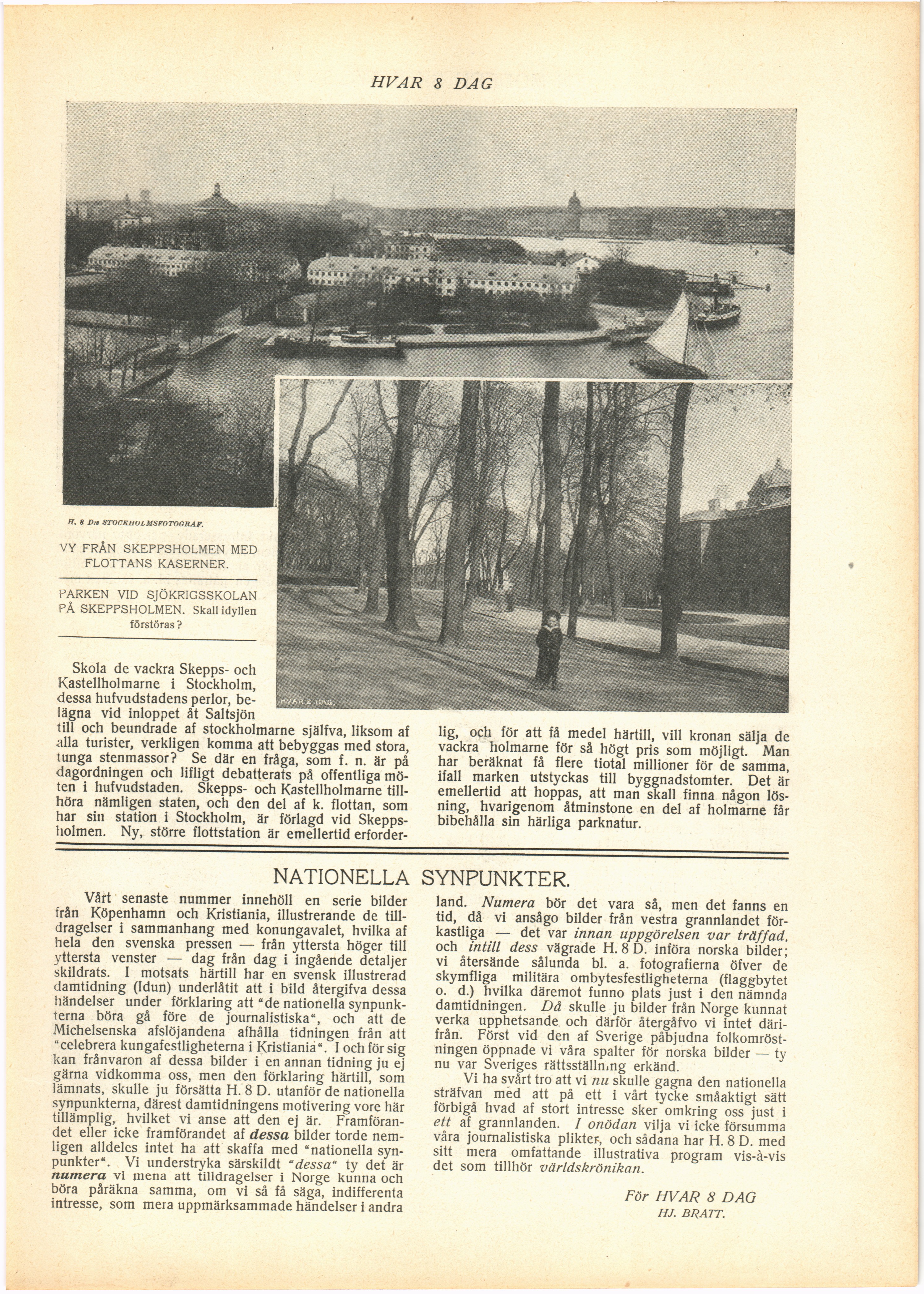 Full resolution (JPEG) - On this page / på denna sida - N:o 11. Den 10 December 1905 - Skeppsholmen - Nationella synpunkter. Af Hj. Bratt