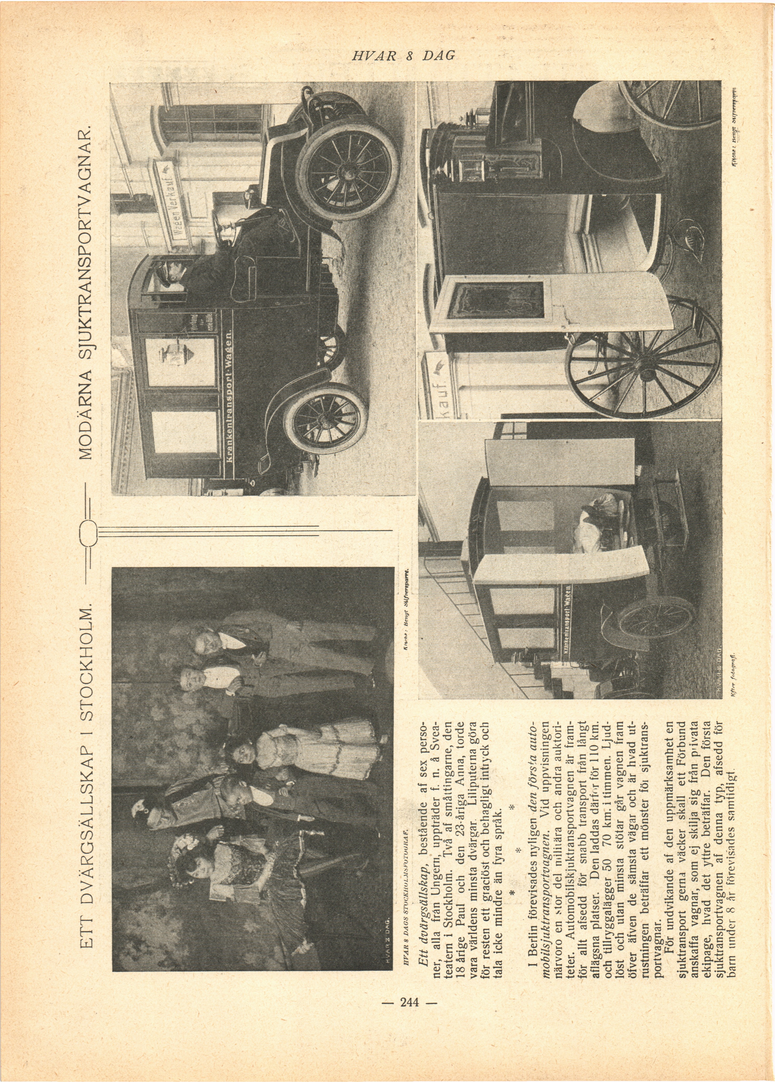 Full resolution (JPEG) - On this page / på denna sida - N:o 15. Den 7 Januari 1906 - Ett dvärgsällskap i Stockholm - Modärna sjuktransportvagnar