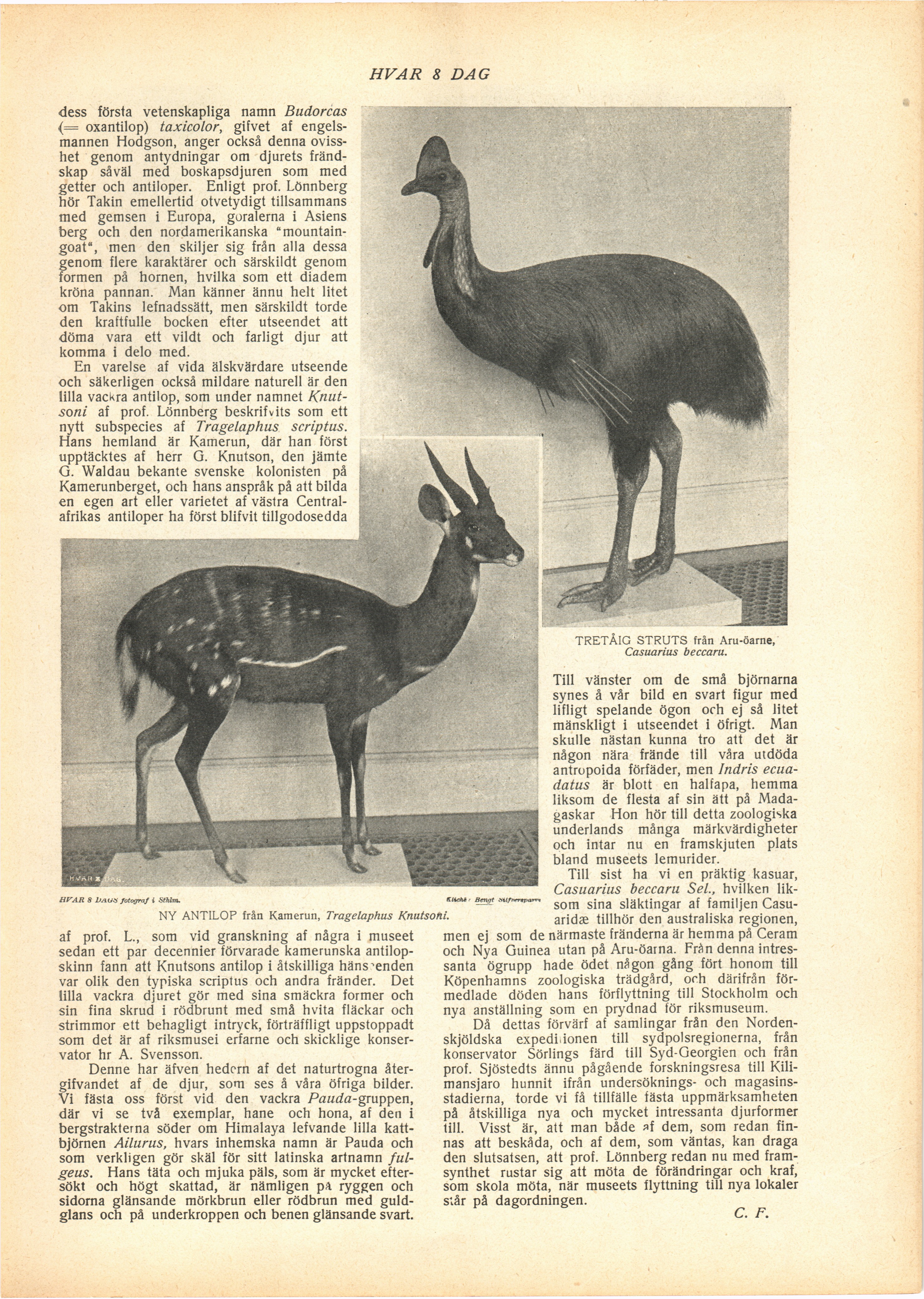 Full resolution (JPEG) - On this page / på denna sida - N:o 17. Den 21 Januari 1906 - Nyheter i zoologiska riksmuseum. Af C. F.