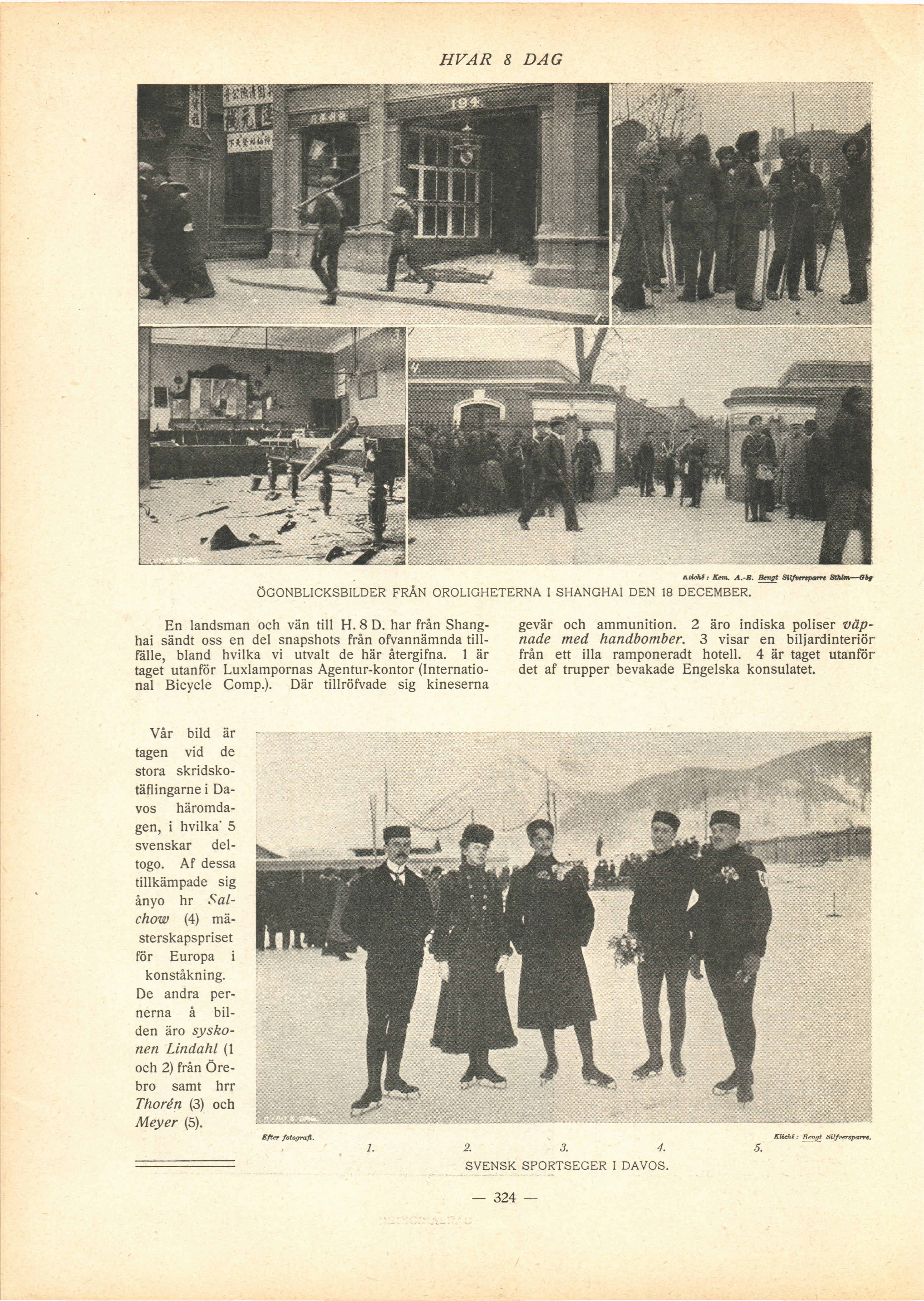Full resolution (JPEG) - On this page / på denna sida - N:o 20. Den 11 Februari 1906 - Ögonblicksbilder från oroligheterna i Shanghai - Svensk sportseger i Davos