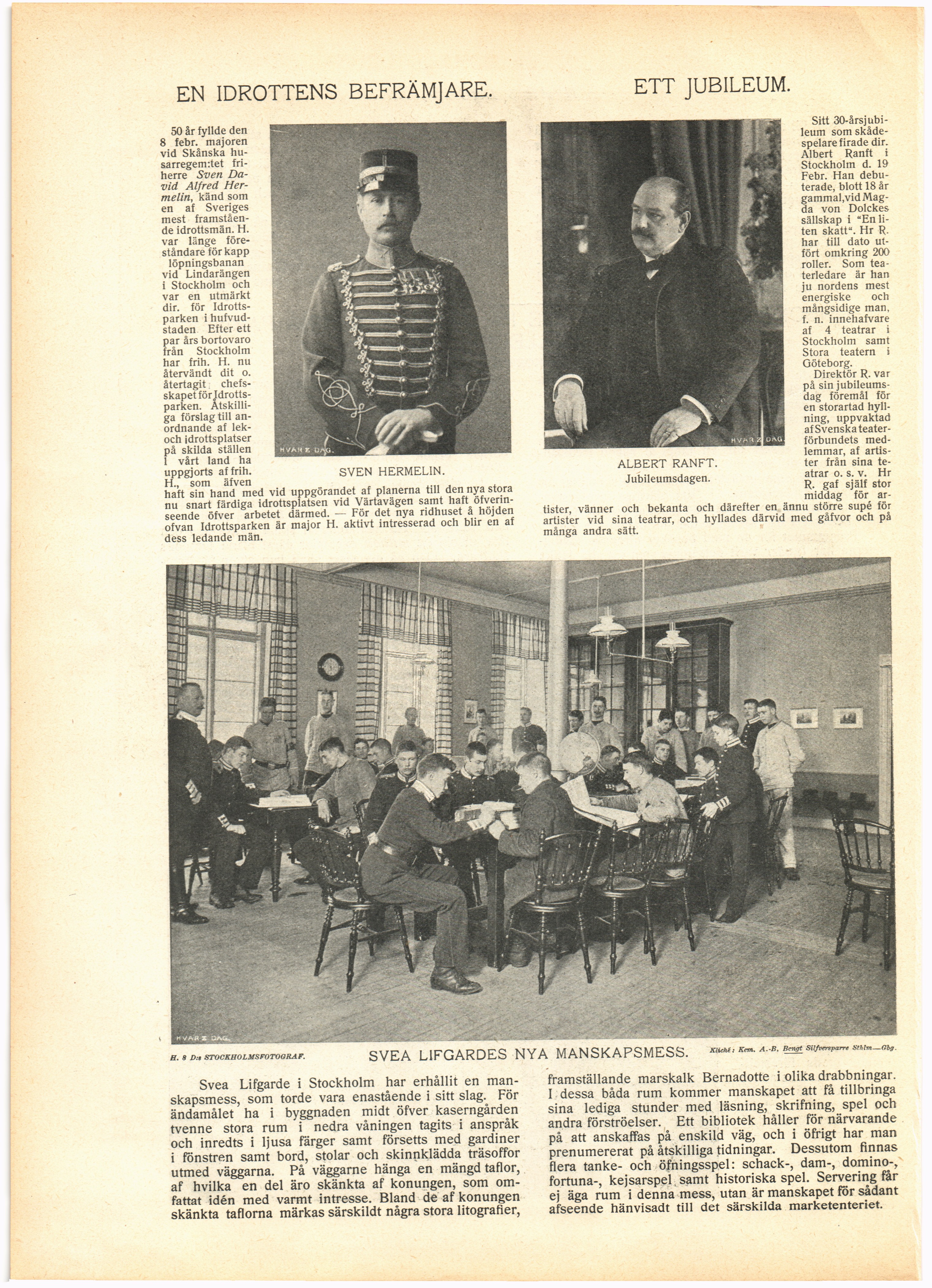 Full resolution (JPEG) - On this page / på denna sida - N:o 22. Den 25 Februari 1906 - En idrottens befrämjare - Ett jubileum - Svea lifgardes manskapsmess