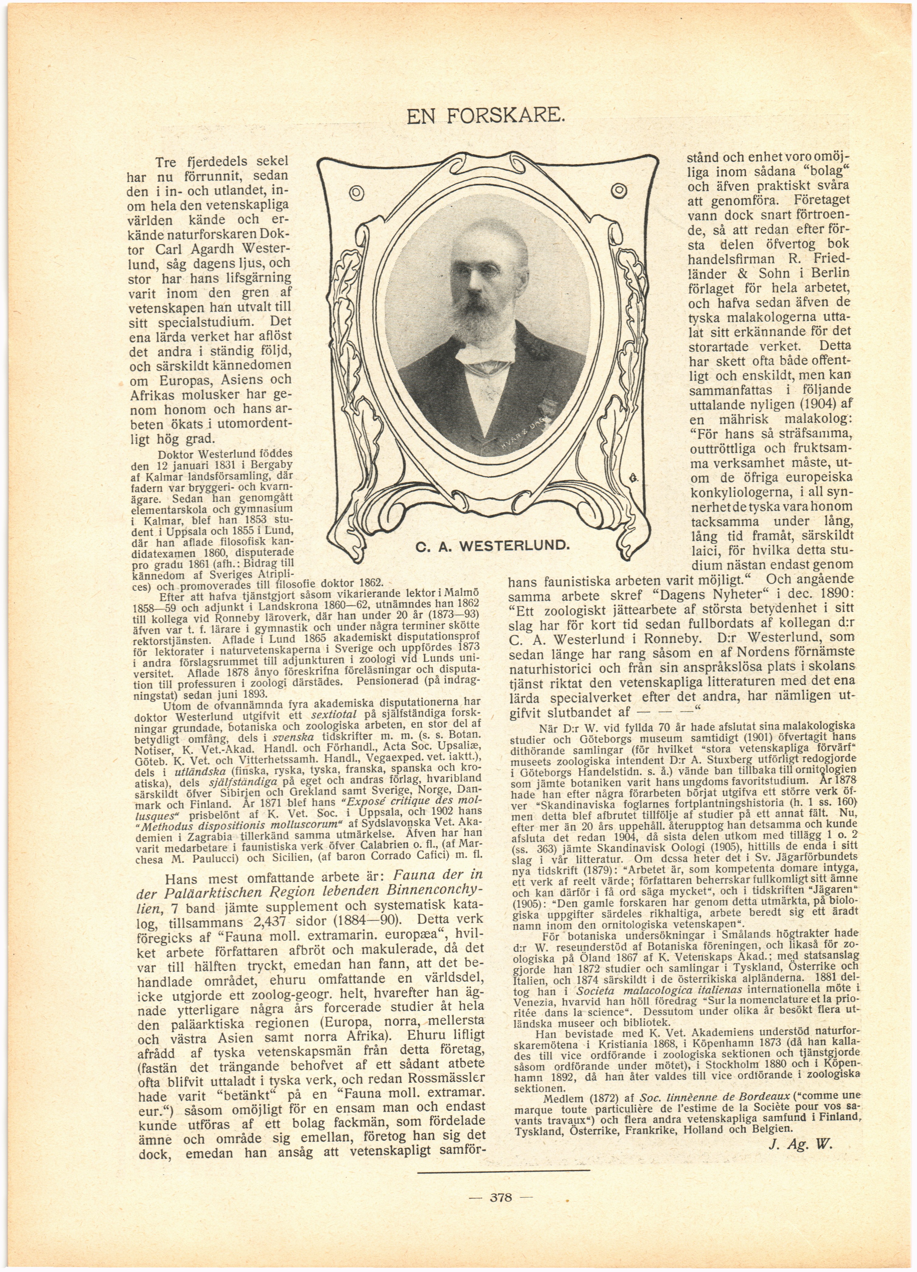 Full resolution (JPEG) - On this page / på denna sida - N:o 24. Den 11 Mars 1906 - En forskare: Carl Agardh Westerlund. Af J. Ag. W.