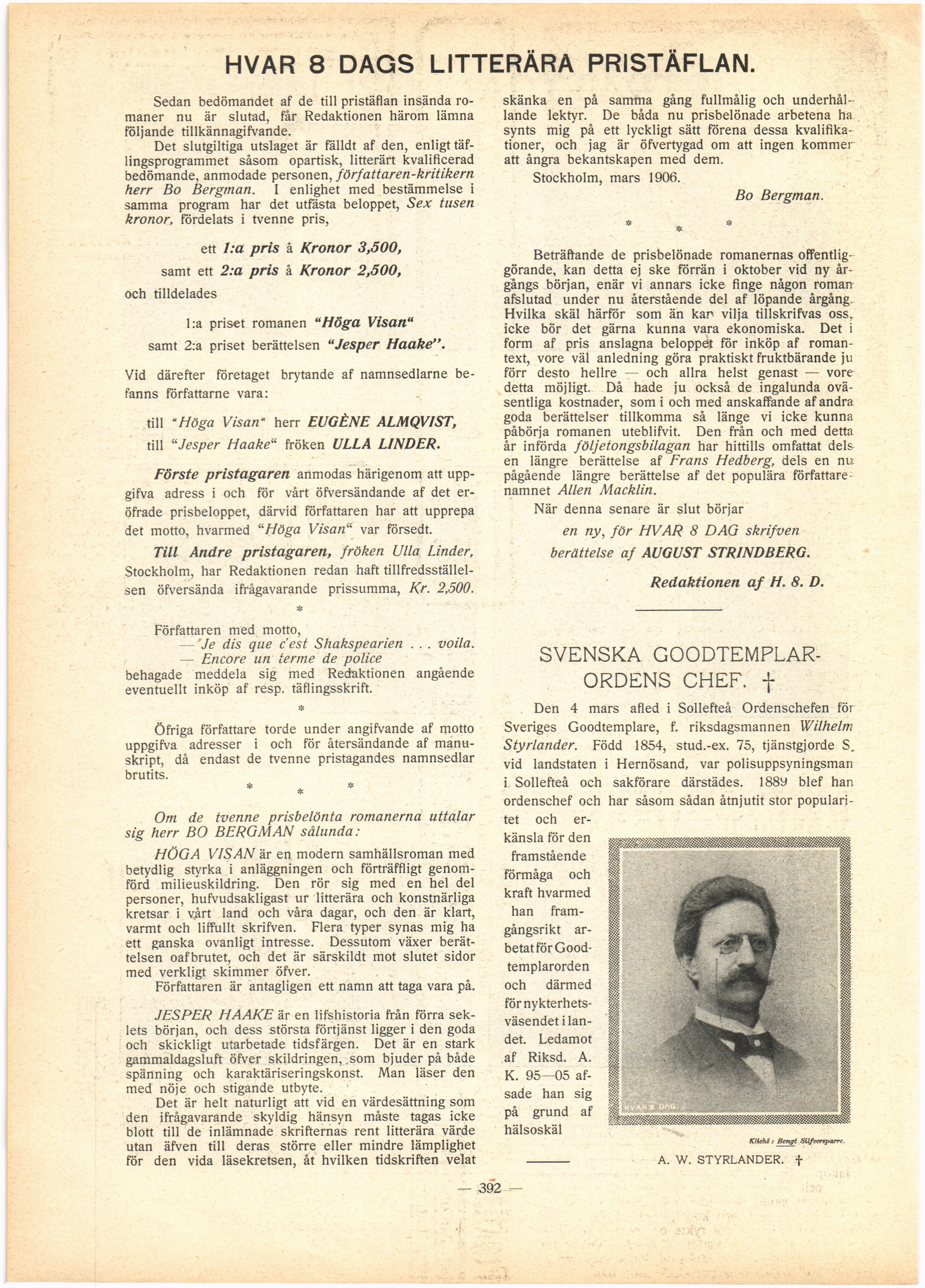 manuskript, då endast de tvenne pristagandes namnsedlar