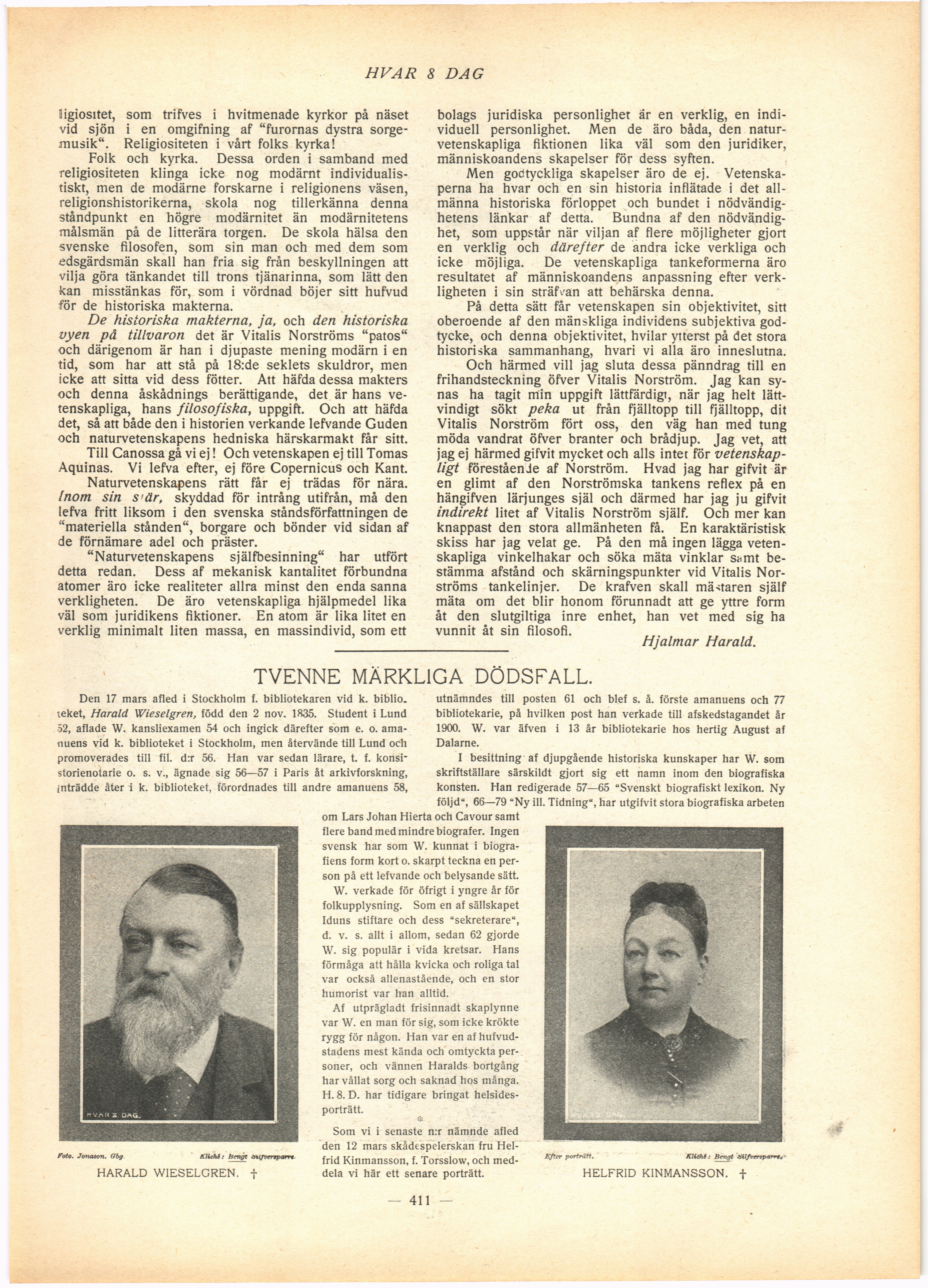 Full resolution (JPEG) - On this page / på denna sida - N:o 26. Den 25 Mars 1906 - Vitalis Norström. Af Hjalmar Harald - Tvenne märkliga dödsfall