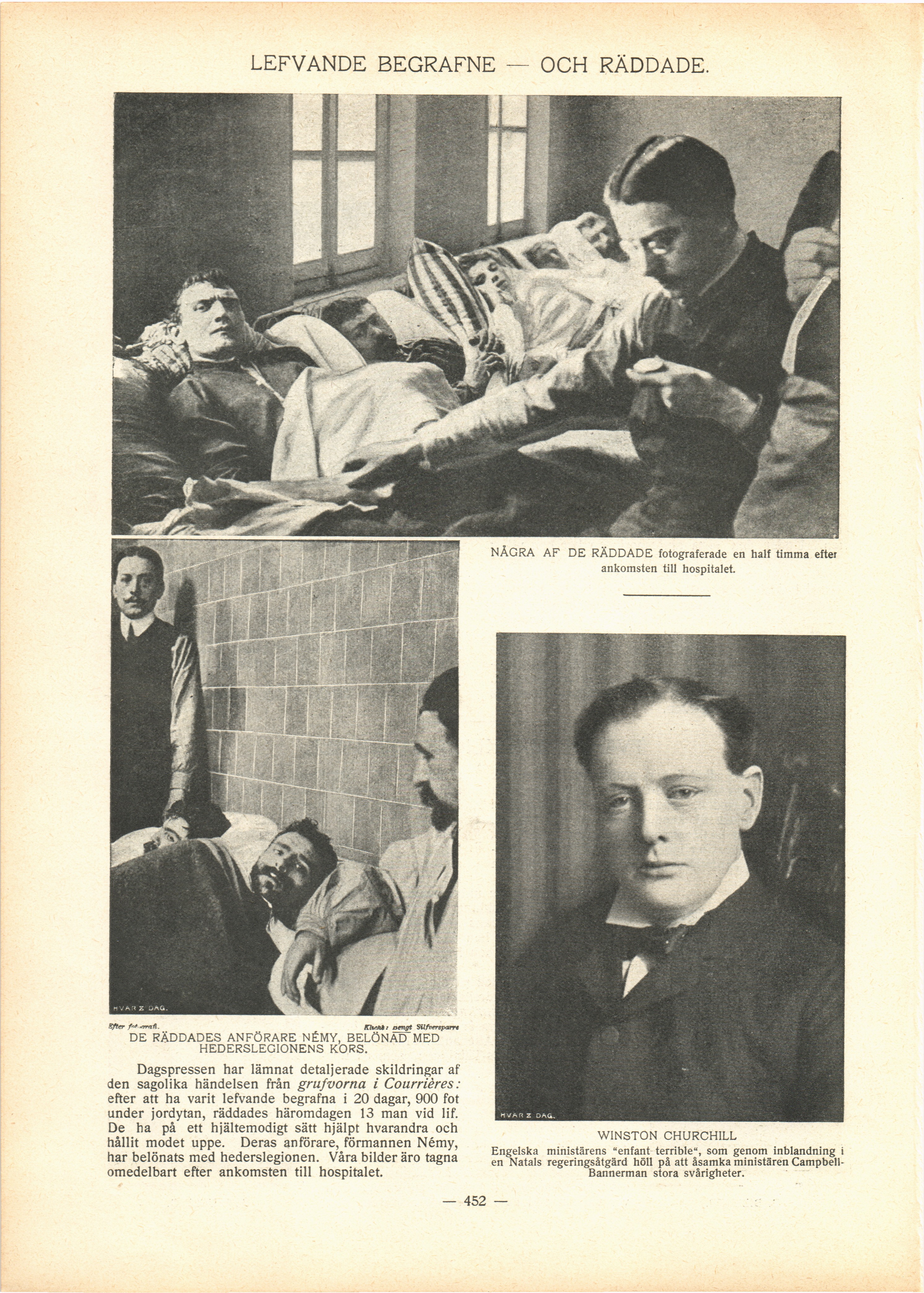 Full resolution (JPEG) - On this page / på denna sida - N:o 28. Den 8 April 1906 - Lefvande begrafne — och räddade - Winston Churchill