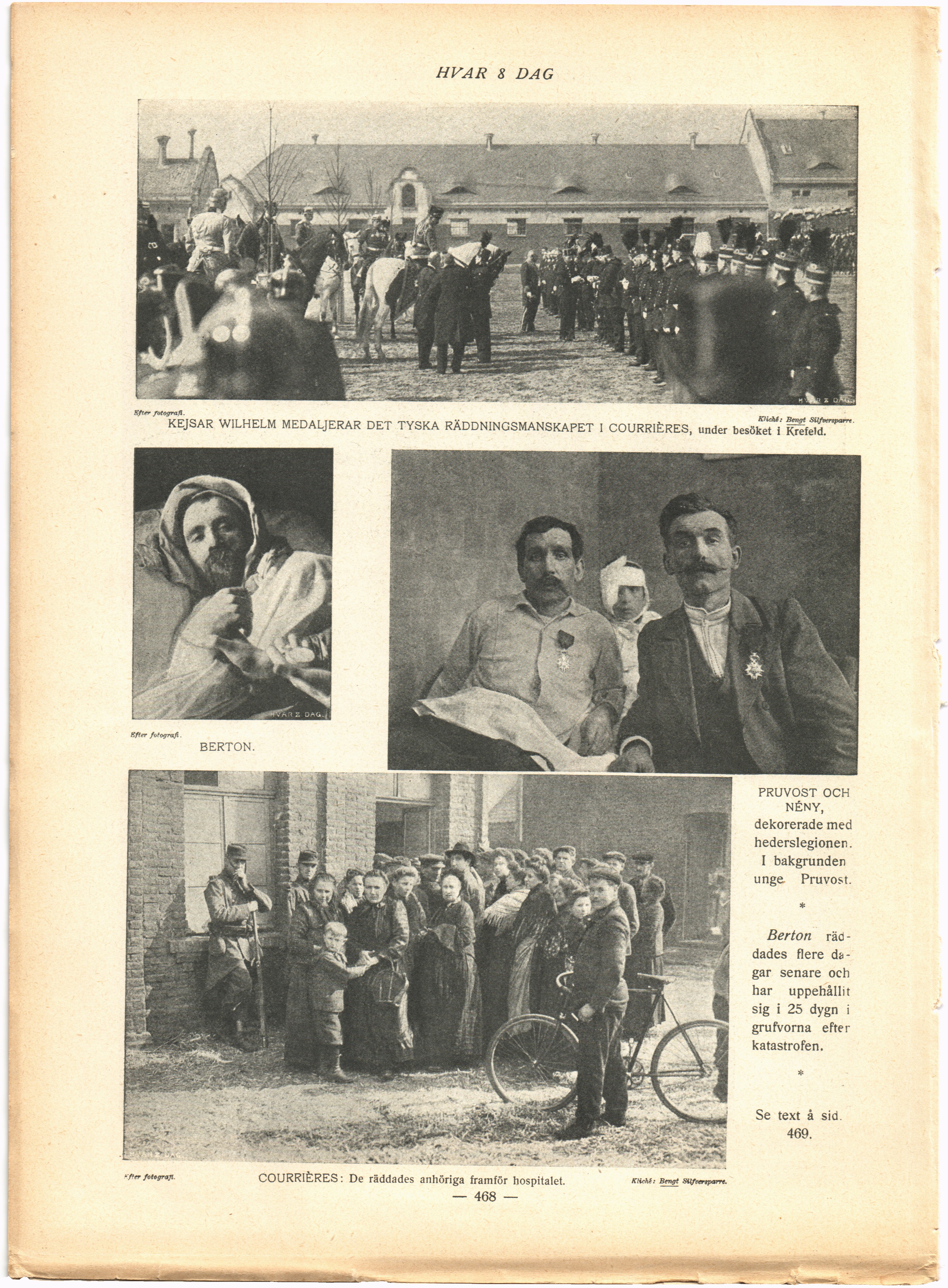 KEJSAR WILHELM MEDALJERAR DET TYSKA RÄDDNINGSMANSKAPET I COURRIÈRES, under besöket i K^feld.