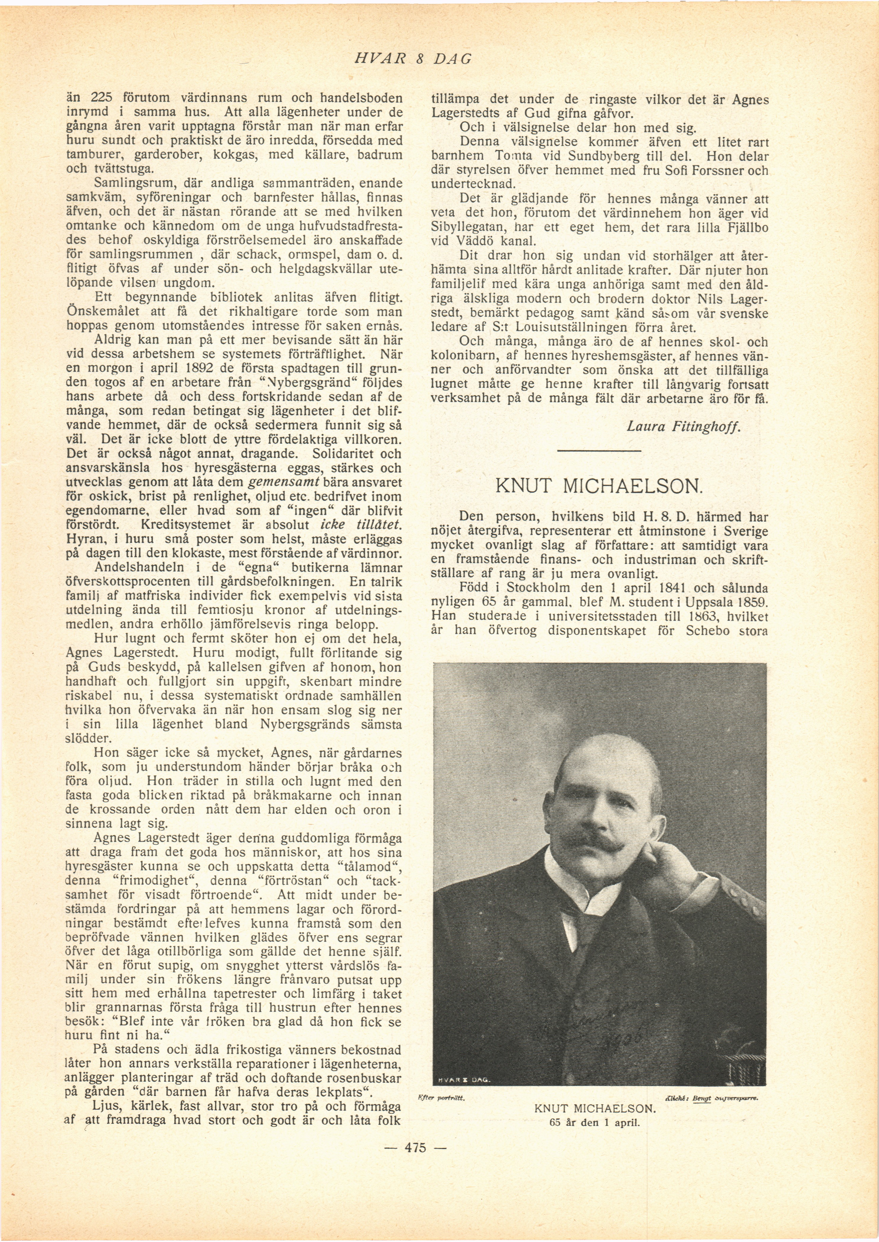 Full resolution (JPEG) - On this page / på denna sida - N:o 30. Den 22 April 1906 - Agnes Lagerstedt. Af Laura Fitinghoff - Knut Michaelson