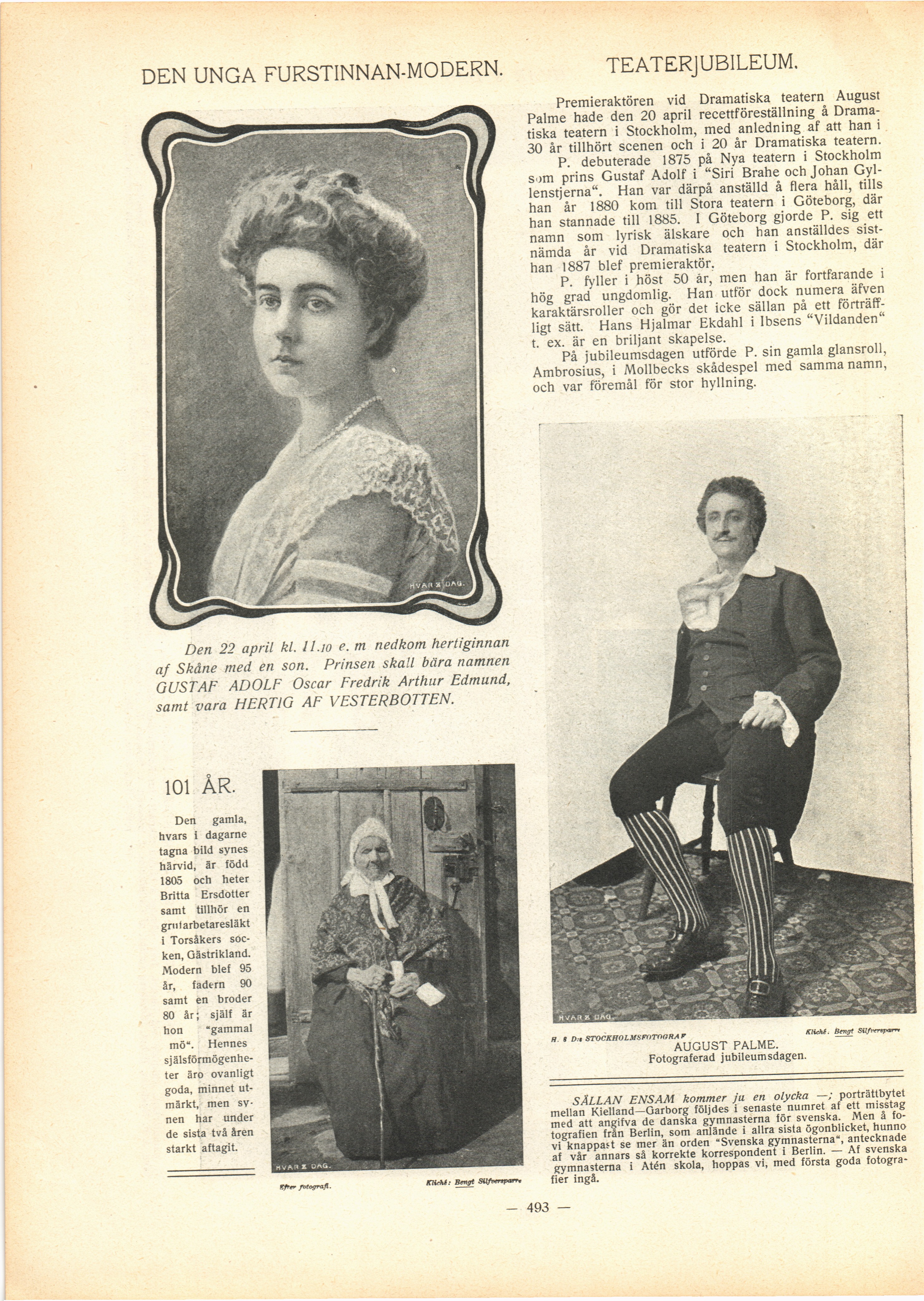 Full resolution (JPEG) - On this page / på denna sida - N:o 31. Den 29 April 1906 - Den unga furstinnan-modern - 101 år - Teaterjubileum - Rättelse