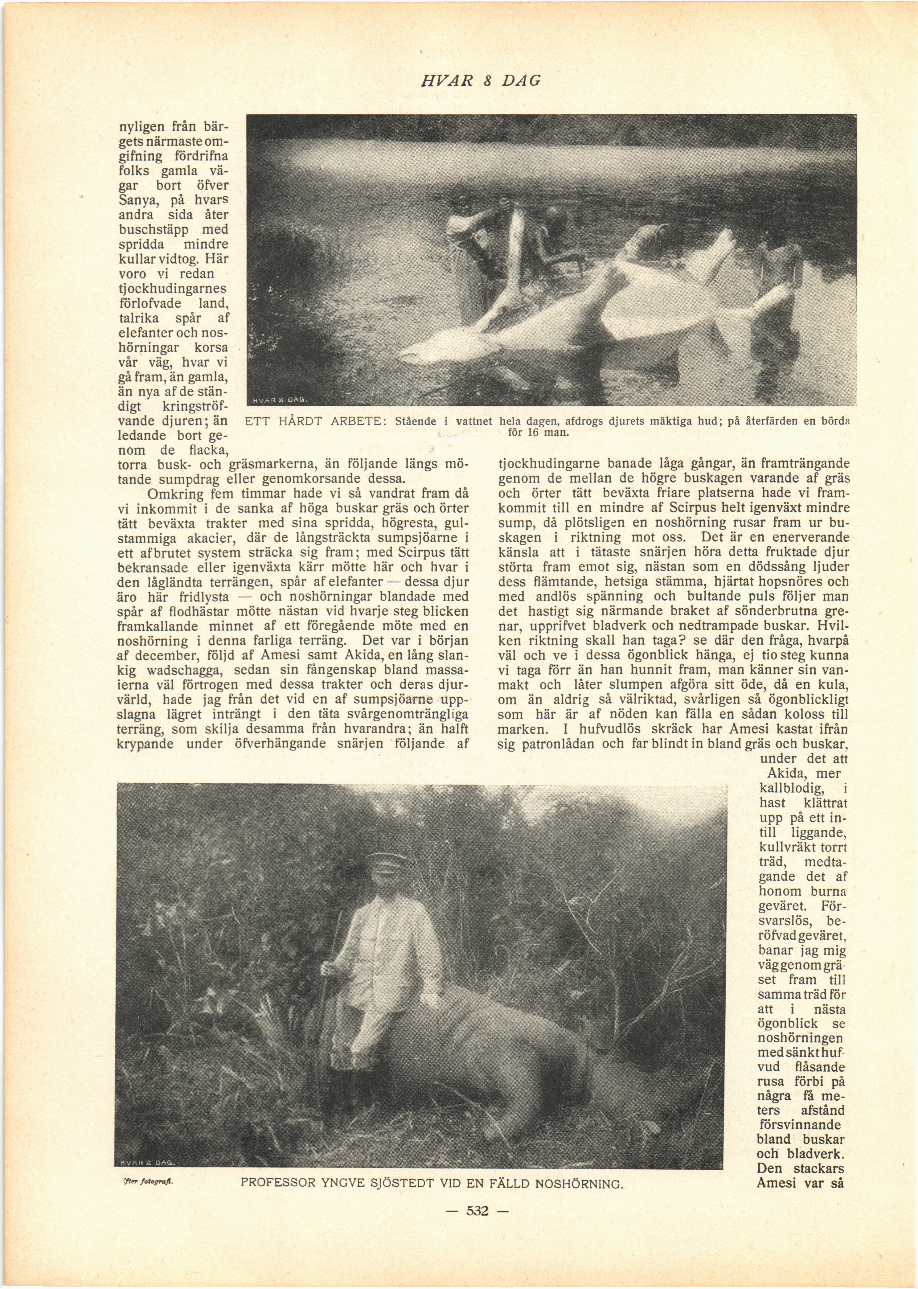 Full resolution (JPEG) - On this page / på denna sida - N:o 33. Den 13 Maj 1906 - På noshörning- och flodhästjakt. Af Yngve Sjöstedt