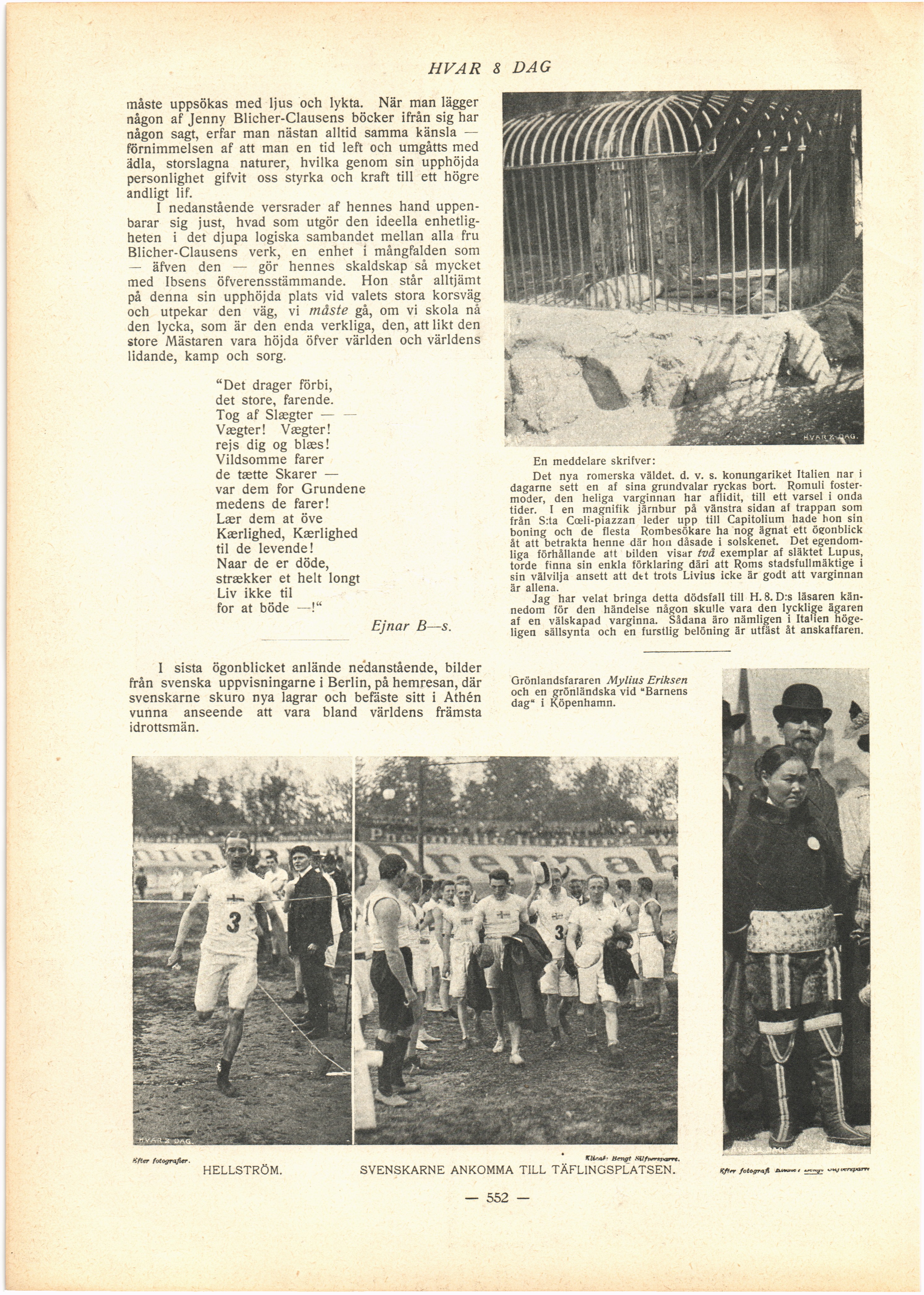 Full resolution (JPEG) - On this page / på denna sida - N:o 34. Den 20 Maj 1906 - Jenny Blicher-Clausen. Af Ejnar B—s - Bild från Rom - Svenskar på idrottstäflingar i Berlin - Från »Barnens dag» i Köpenhamn