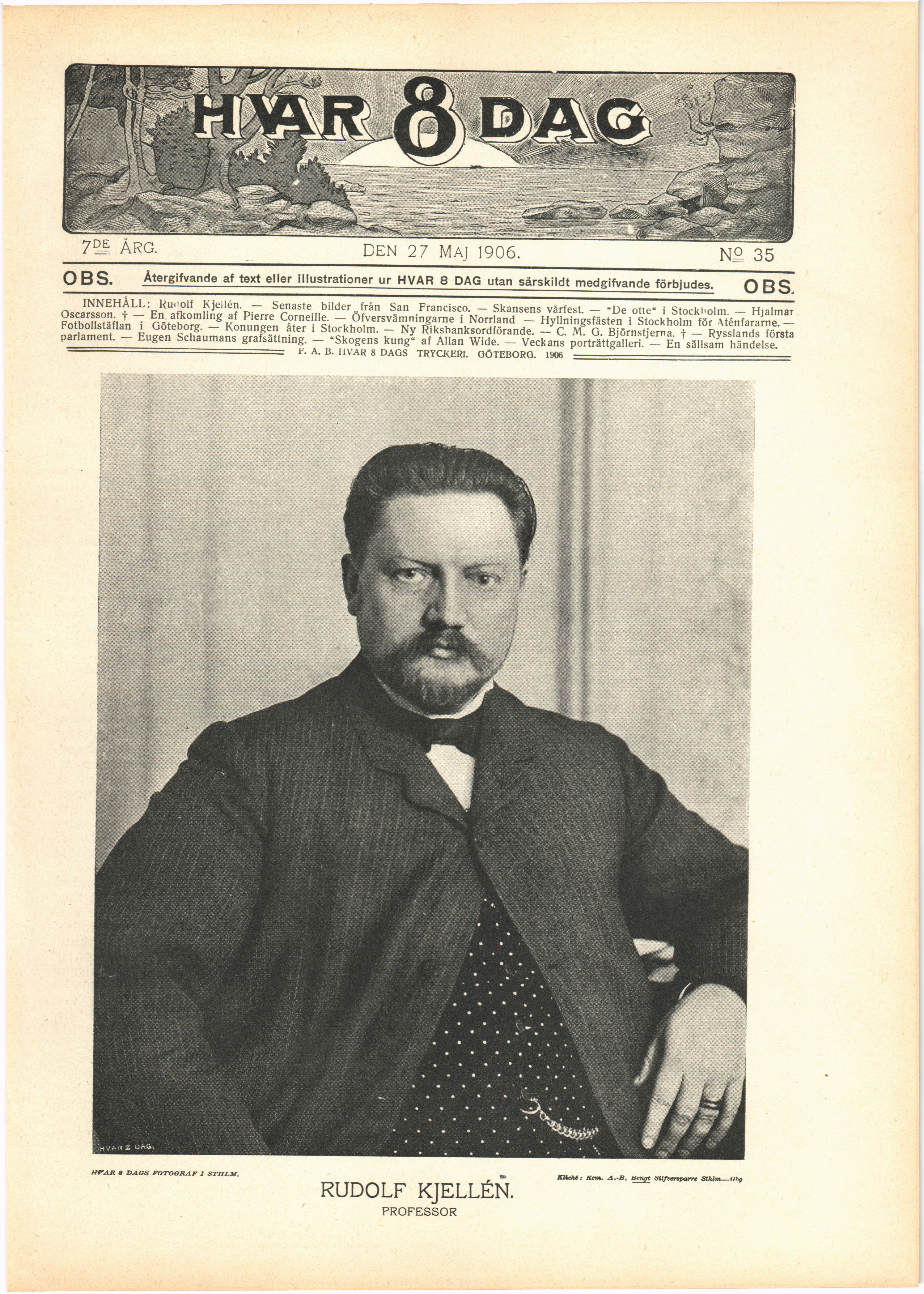 Full resolution (JPEG) - On this page / på denna sida - N:o 35. Den 27 Maj 1906 - Rudolf Kjellén. Af Gustaf Bellander