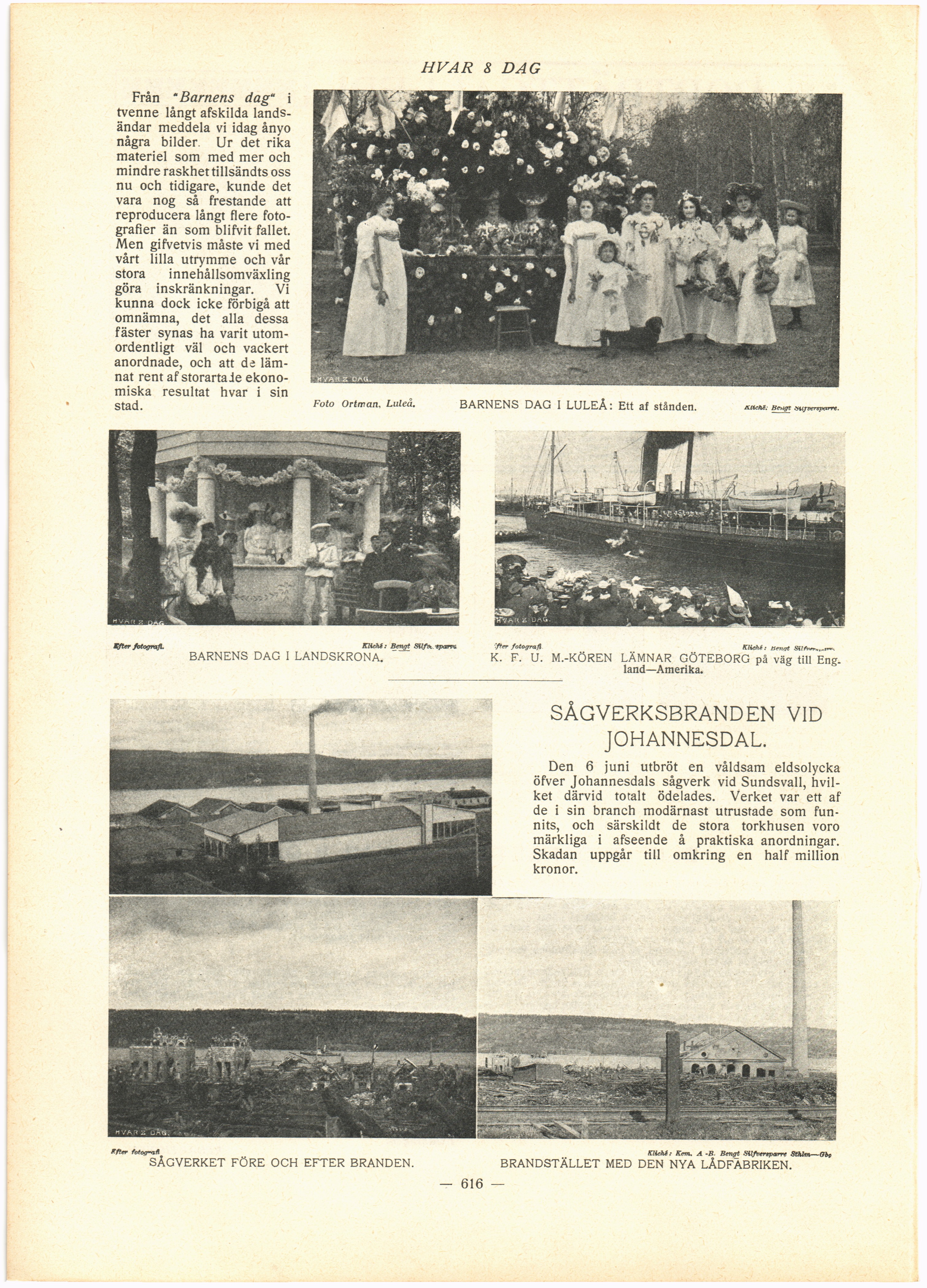 Full resolution (JPEG) - On this page / på denna sida - N:o 38. Den 17 Juni 1906 - Barnens dag - K. F. U. M.-kören lämnar Göteborg - Sågverksbranden vid Johannesdal