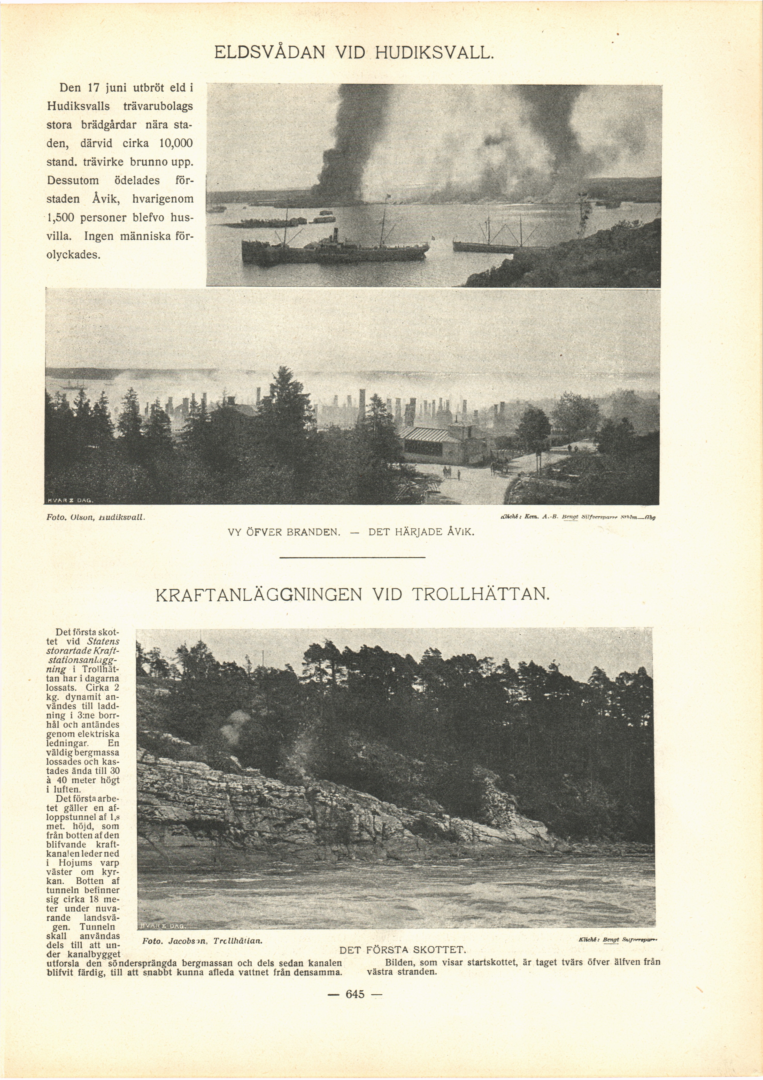 Full resolution (JPEG) - On this page / på denna sida - N:o 40. Den 1 Juli 1906 - Eldsvådan vid Hudiksvall - Kraftanläggningen vid Trollhättan