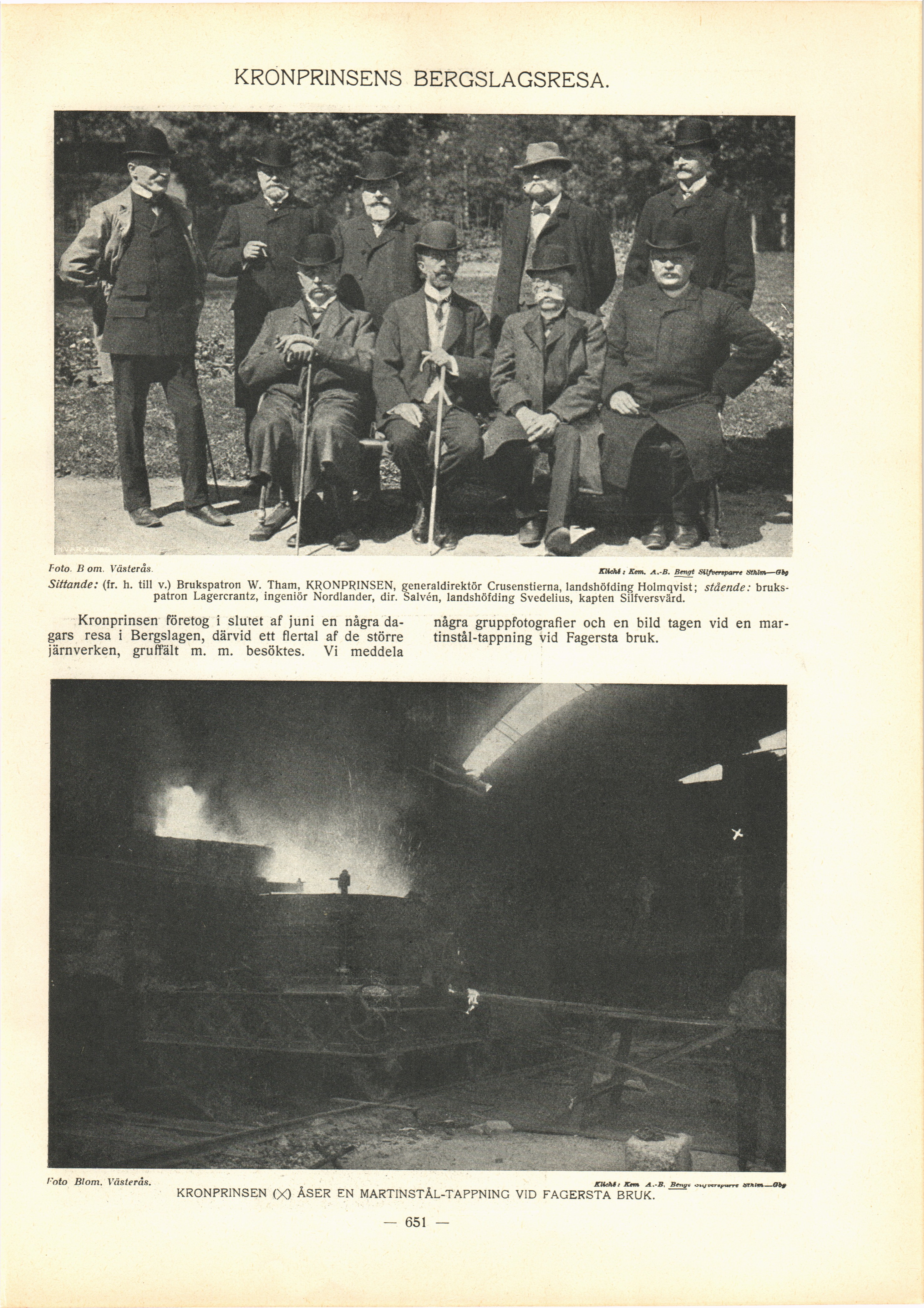 KRONPRINSEN (X) ÅSER EN MARTINSTÅL-TAPPNING VID FAGERSTA BRUK.