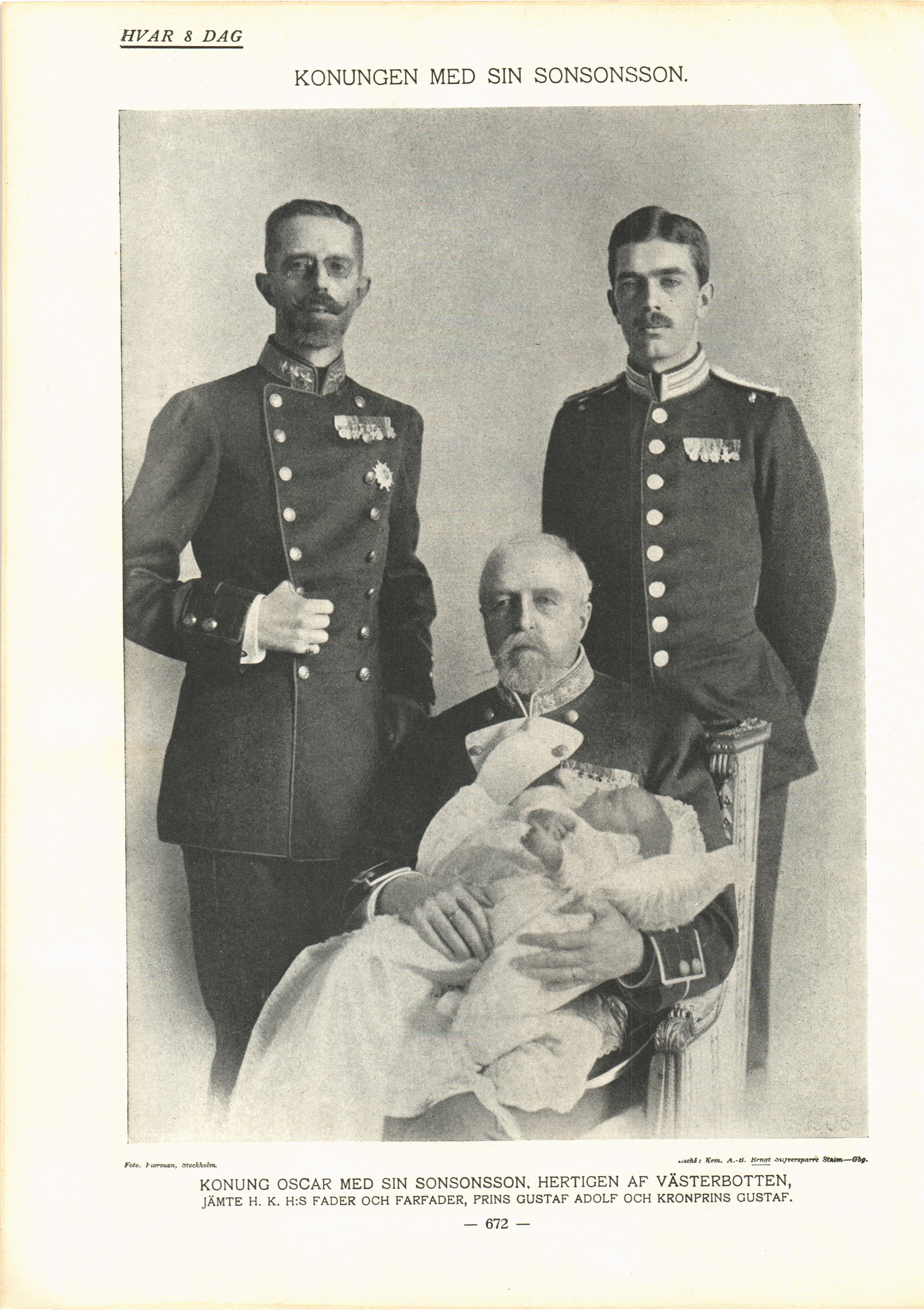 JÄMTE H. K. H:S FADER OCH FARFADER, PRINS GUSTAF ADOLF OCH KRONPRINS GUSTAF.