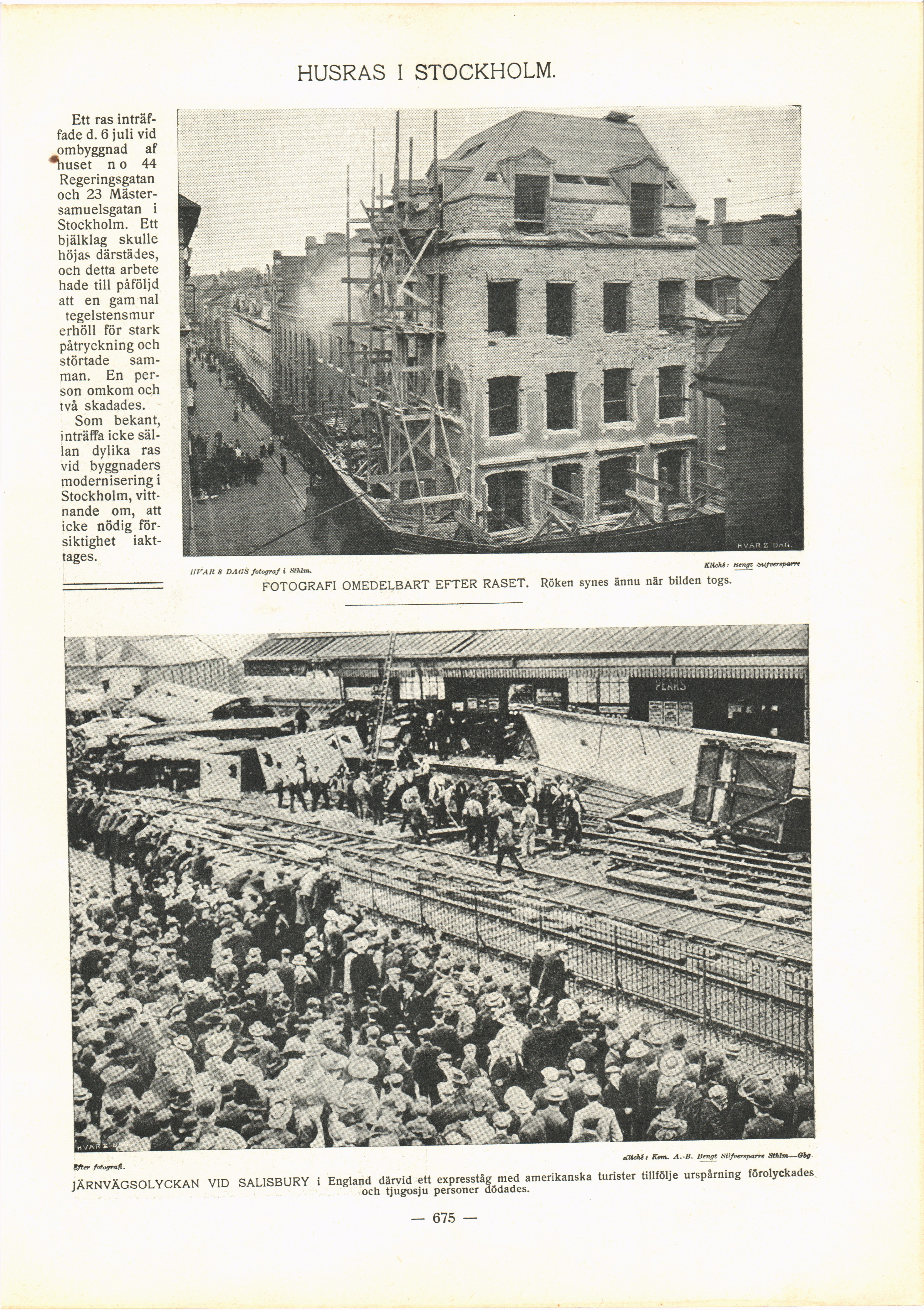Full resolution (JPEG) - On this page / på denna sida - N:o 42. Den 15 Juli 1906 - Husras i Stockholm - Järnvägsolyckan i Salisbury