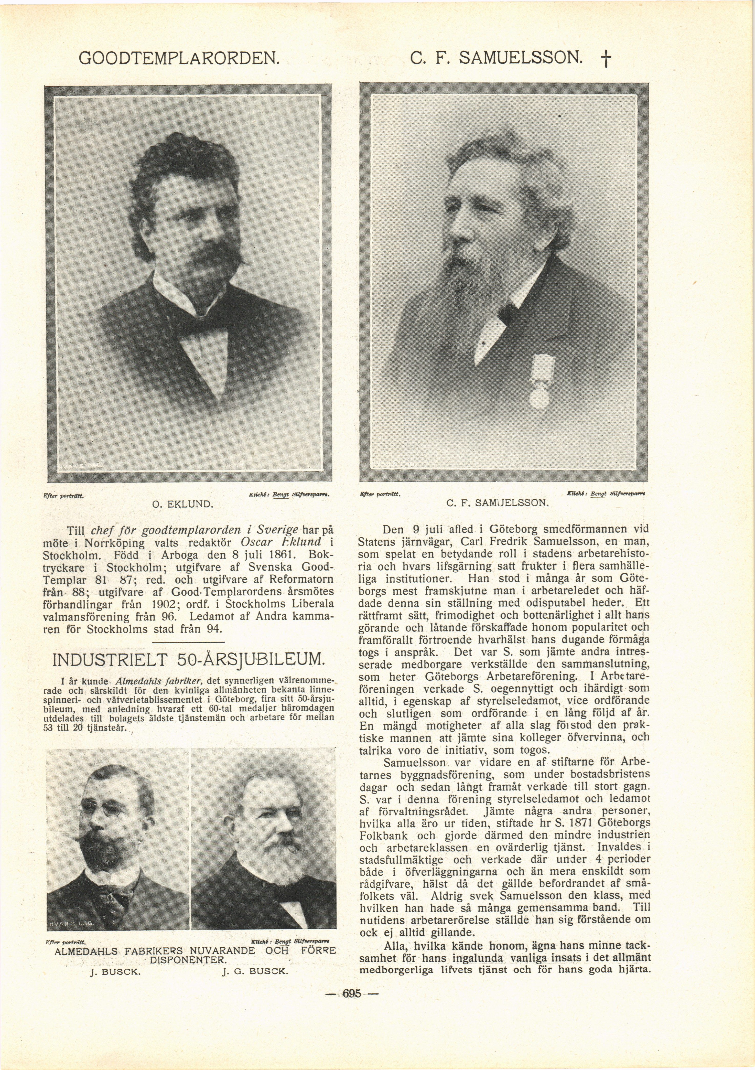 Full resolution (JPEG) - On this page / på denna sida - N:o 43. Den 22 Juli 1906 - Goodtemplarorden - Industrielt 50-årsjubileum - C. F. Samuelsson †