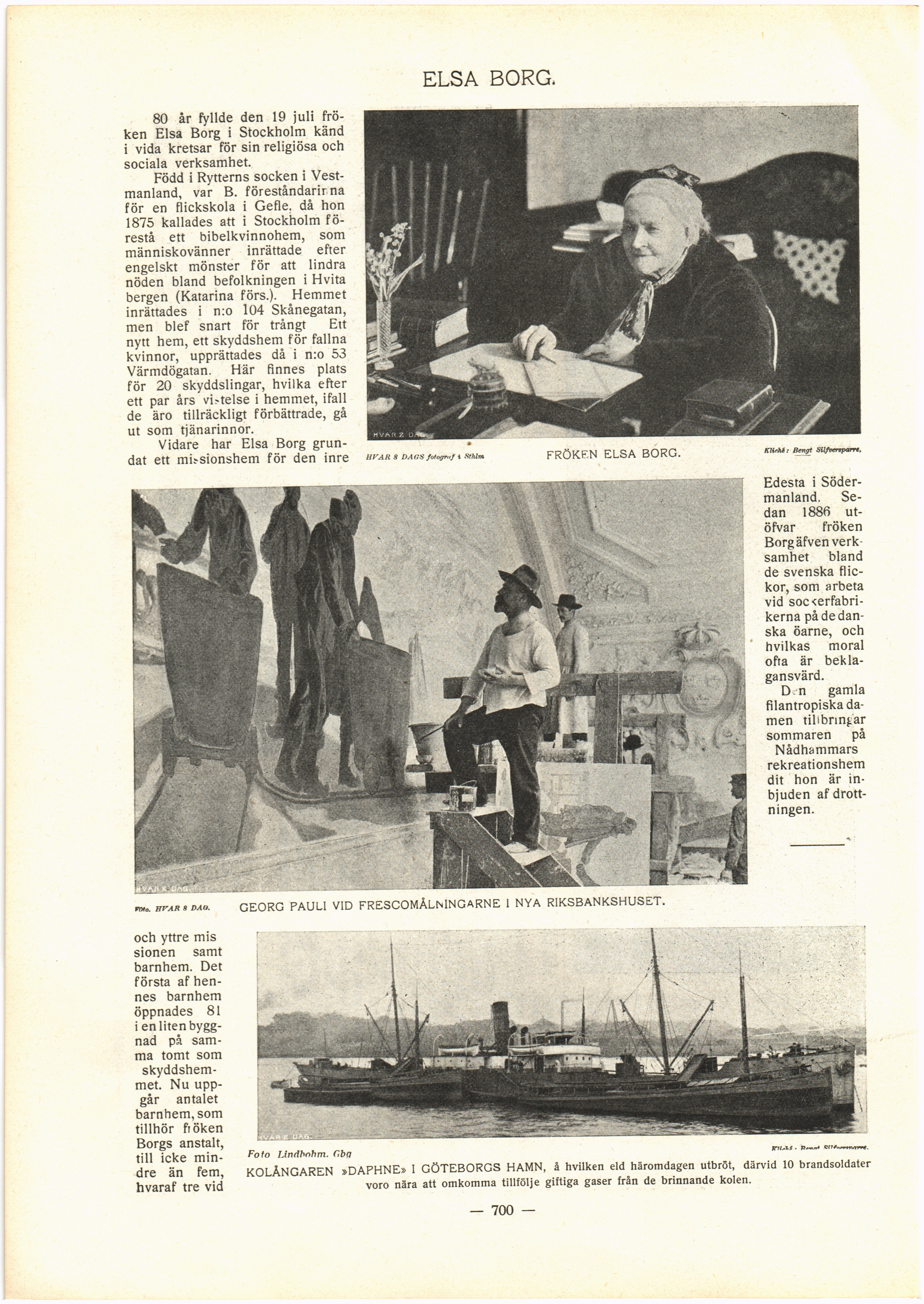 Full resolution (JPEG) - On this page / på denna sida - N:o 44. Den 29 Juli 1906 - Elsa Borg - Frescomålningarne i det nya riksbankshuset - Fartygsbrand i Göteborgs hamn