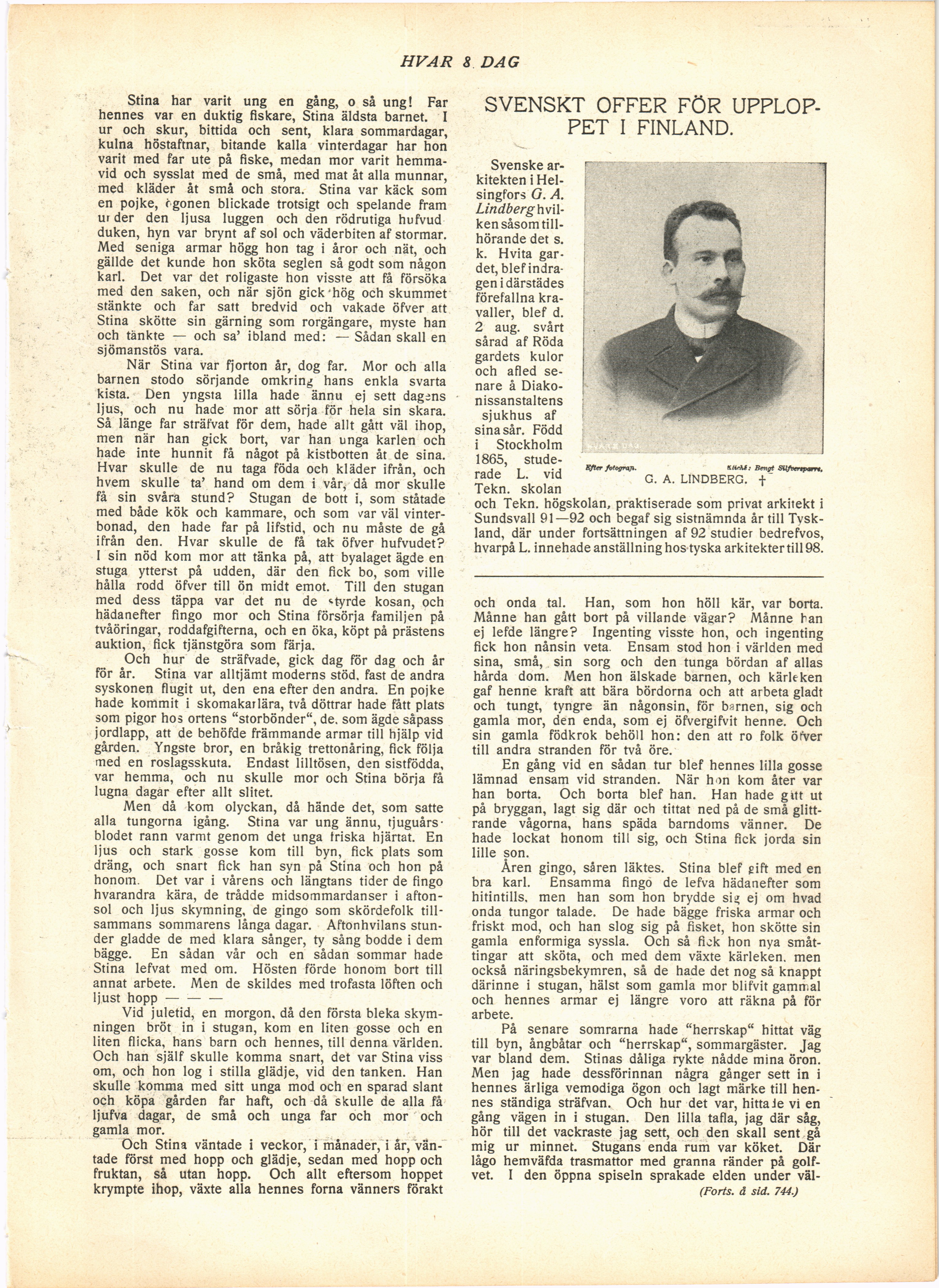 Full resolution (JPEG) - On this page / på denna sida - N:o 46. Den 12 Augusti 1906 - »Rik nog, som nöjd är» af Maja-Brita - Svenskt offer för upproret i Finland