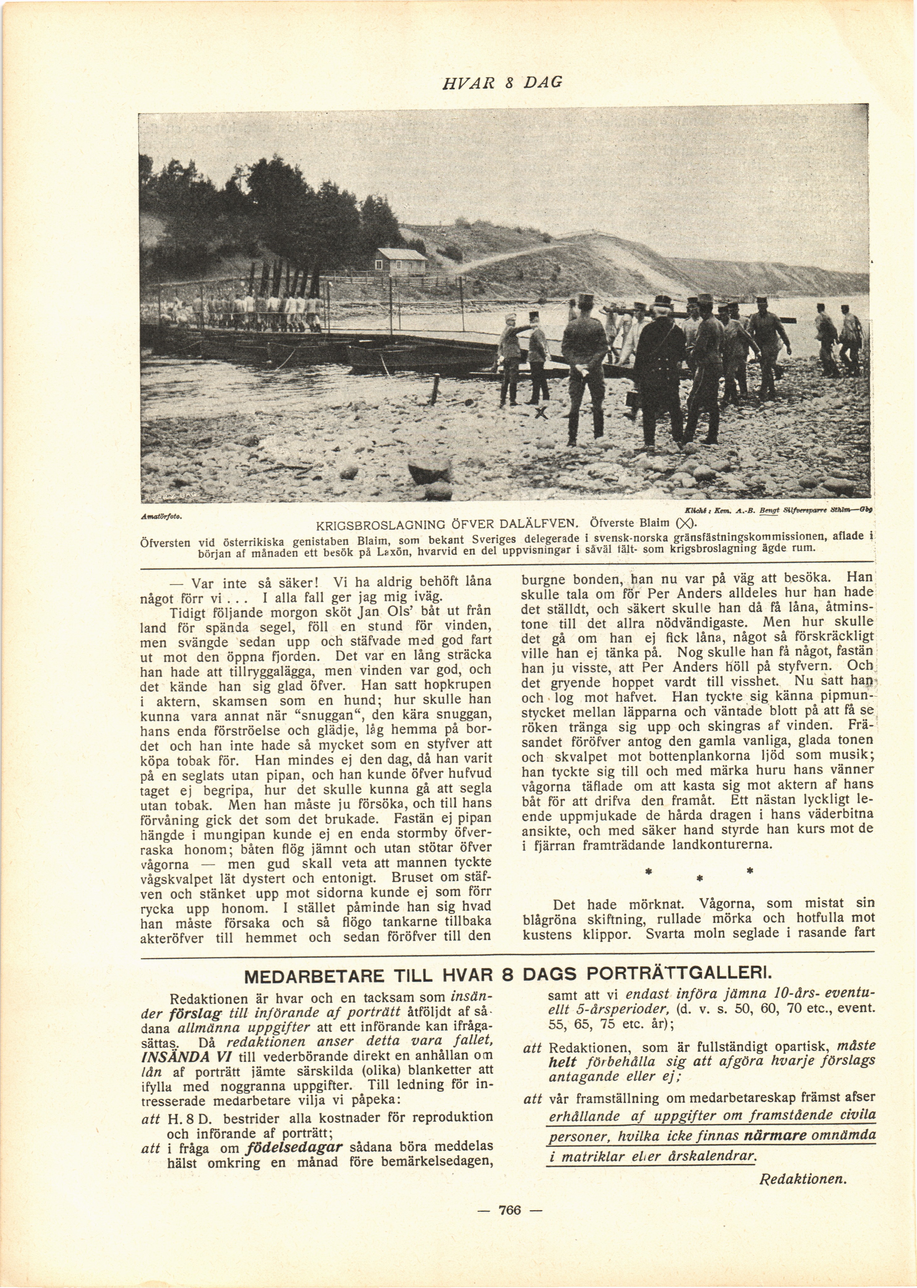 Full resolution (JPEG) - On this page / på denna sida - N:o 48. Den 26 Augusti 1906 - »Bland bränningar» af B. Ström - Krigsbroslagning öfver Dalälfven