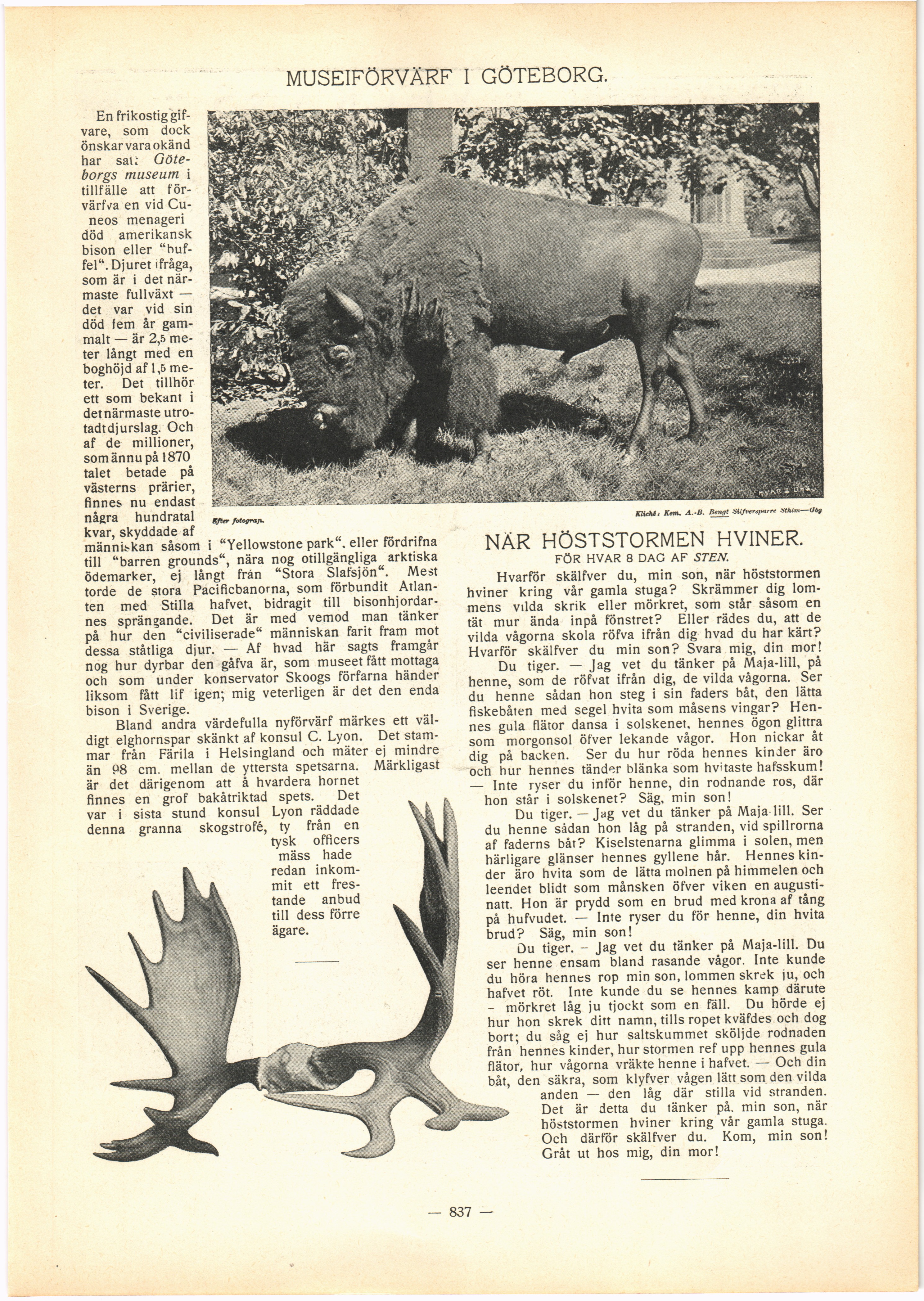 väldigt elghornspar skänkt af konsul C. Lyon. Det