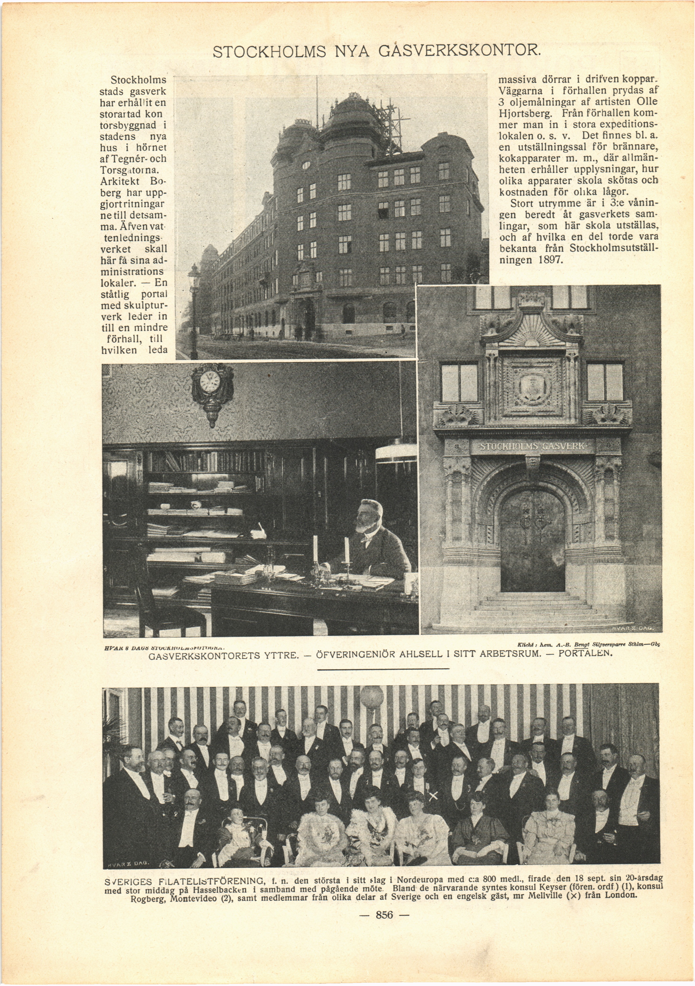 Full resolution (JPEG) - On this page / på denna sida - N:o 53. Den 30 September 1906 - Stockholms nya gasverkskontor - Sveriges Filatelistförenings 20-årsdag