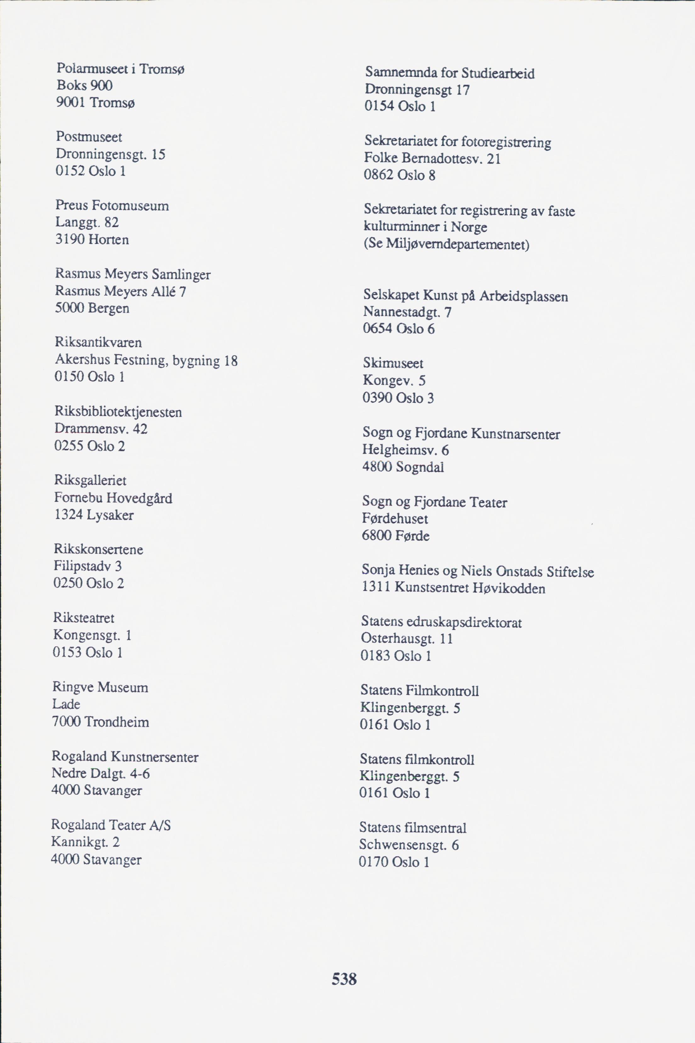 Full resolution (JPEG) - On this page / på denna sida - Del II - Adresser - Kulturinstitusjoner m.m.
