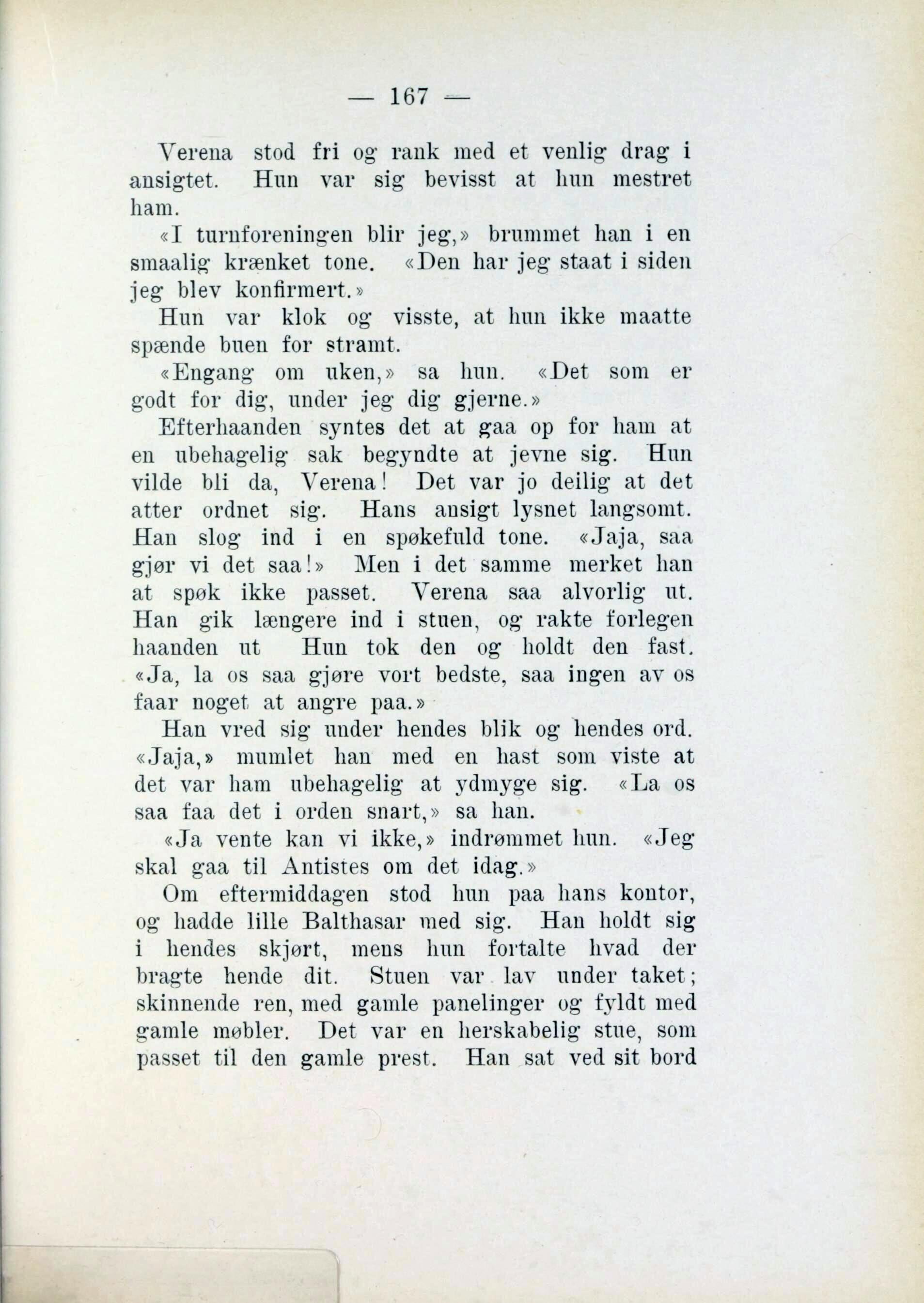at spøk ikke passet. Verena saa alvorlig ut.