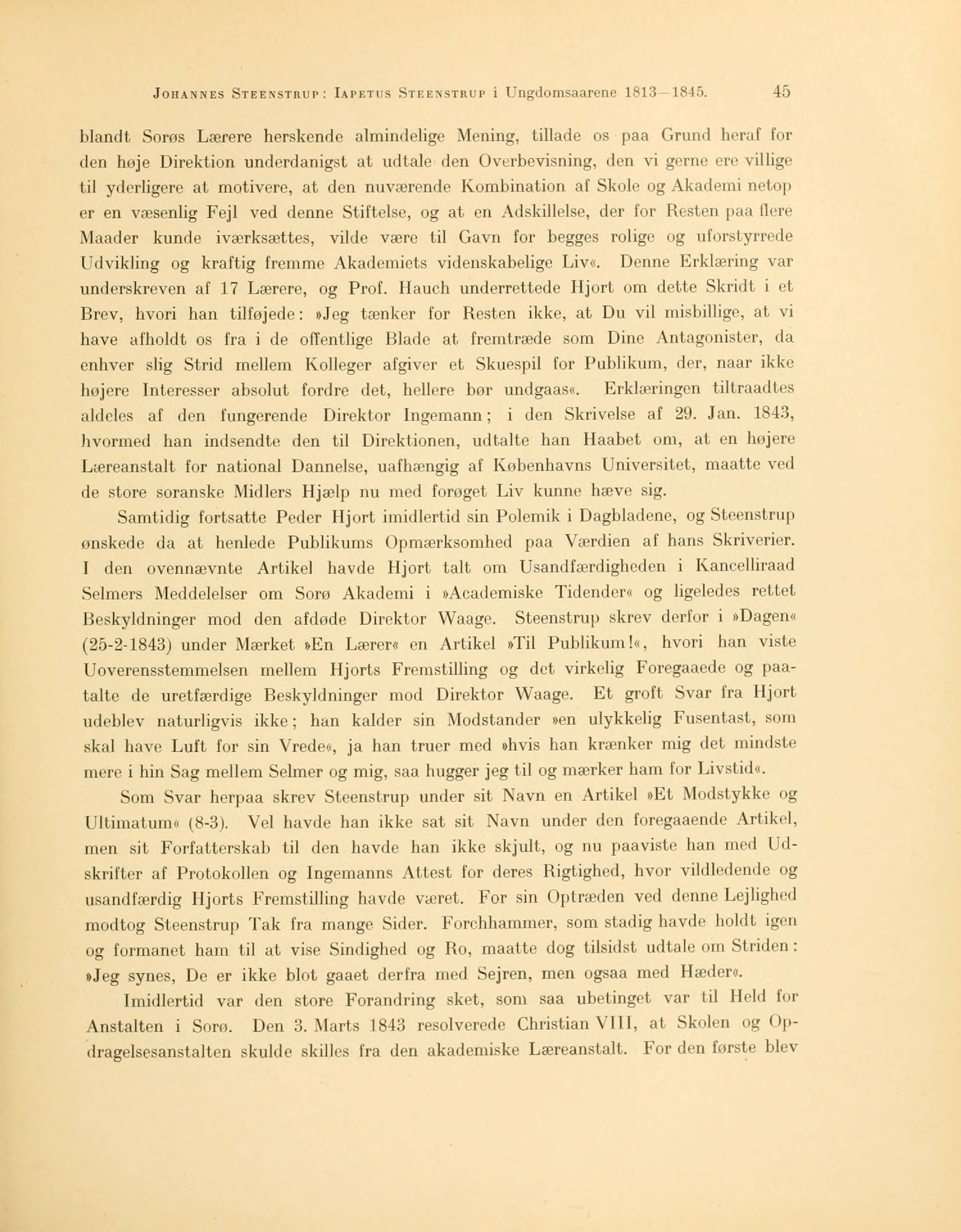 Samtidig fortsatte Peder Hjort imidlertid sin Polemik i Dagbladene, og Steenstrup