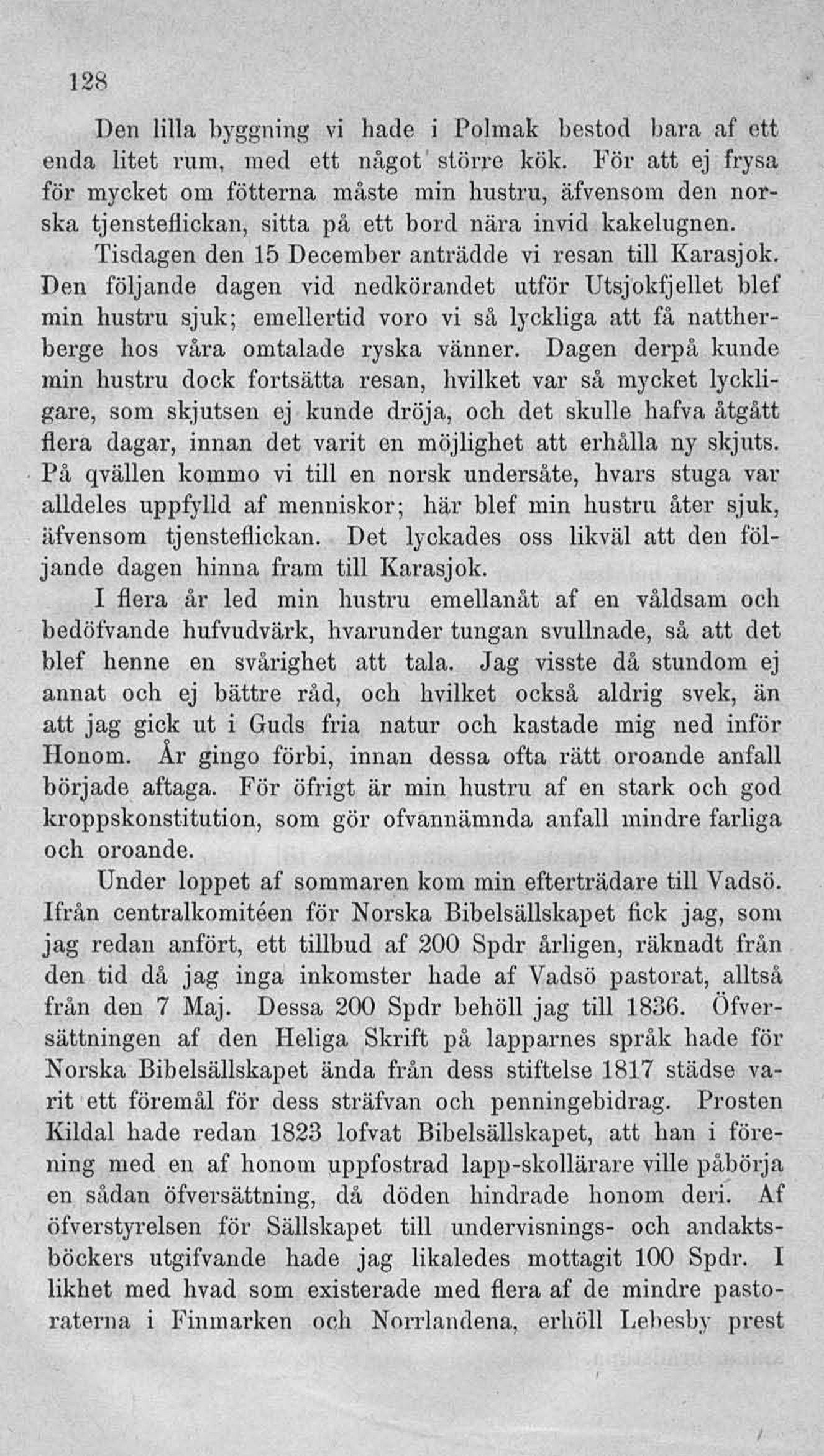 Kildal hade redan 1823 lofvat Bibelsällskapet, att ban i
