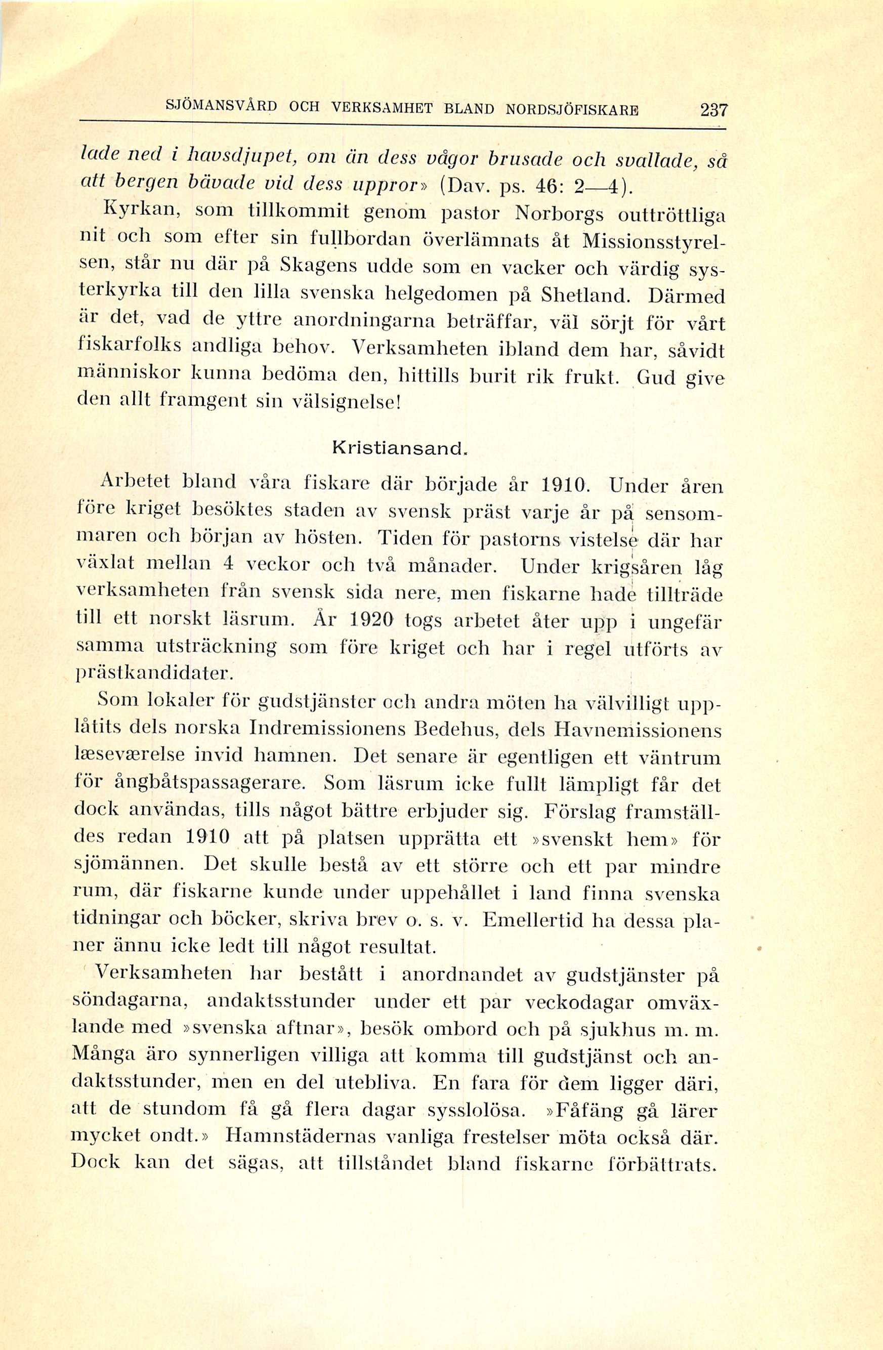 Full resolution (JPEG) - On this page / på denna sida - III. De särskilda stationerna - 1. Sjömansvård och verksamhet bland Nordsjöfiskare - Shetland — Kristiansand — Skagen