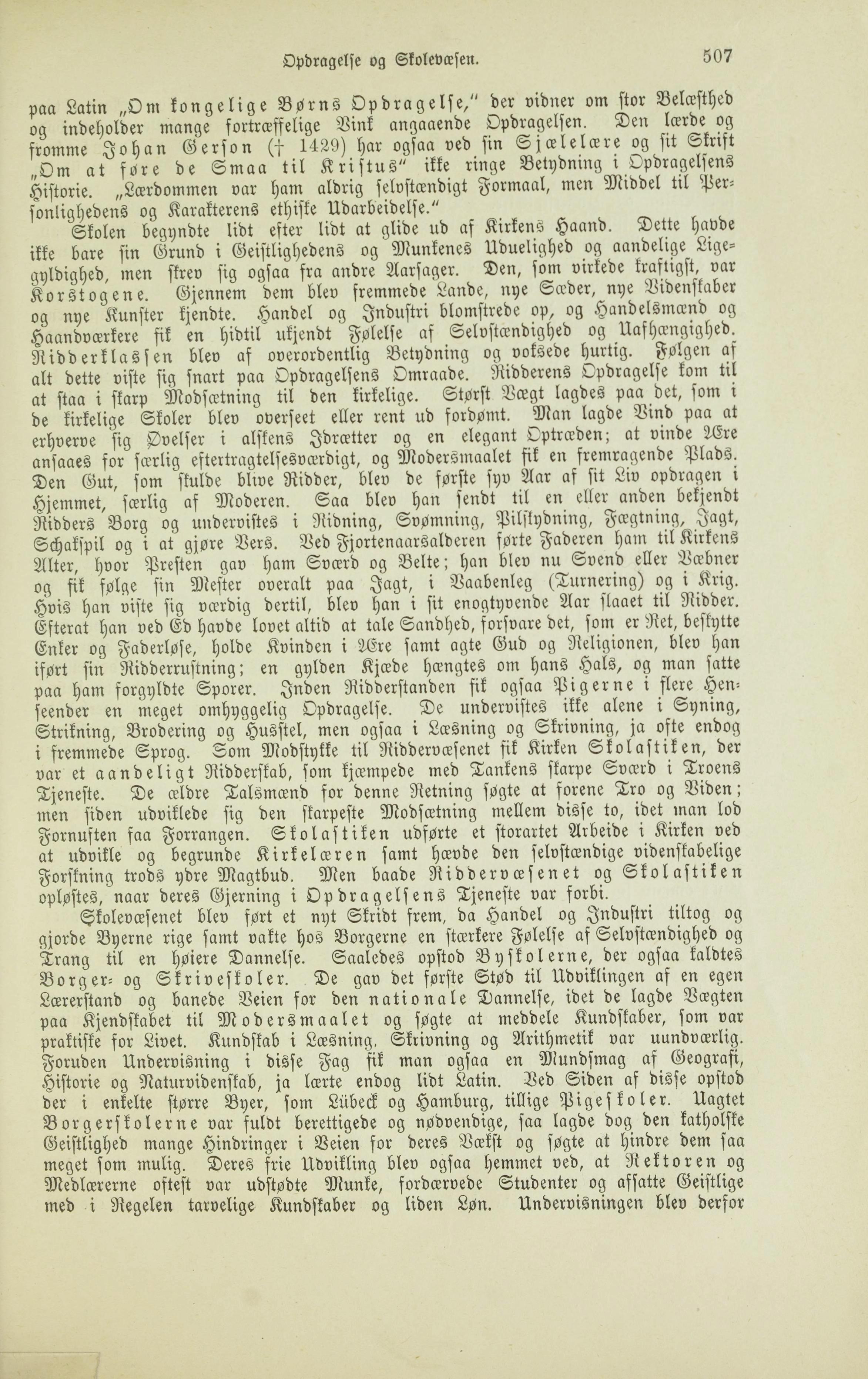 Opdragelse og Skolevæsen. 507