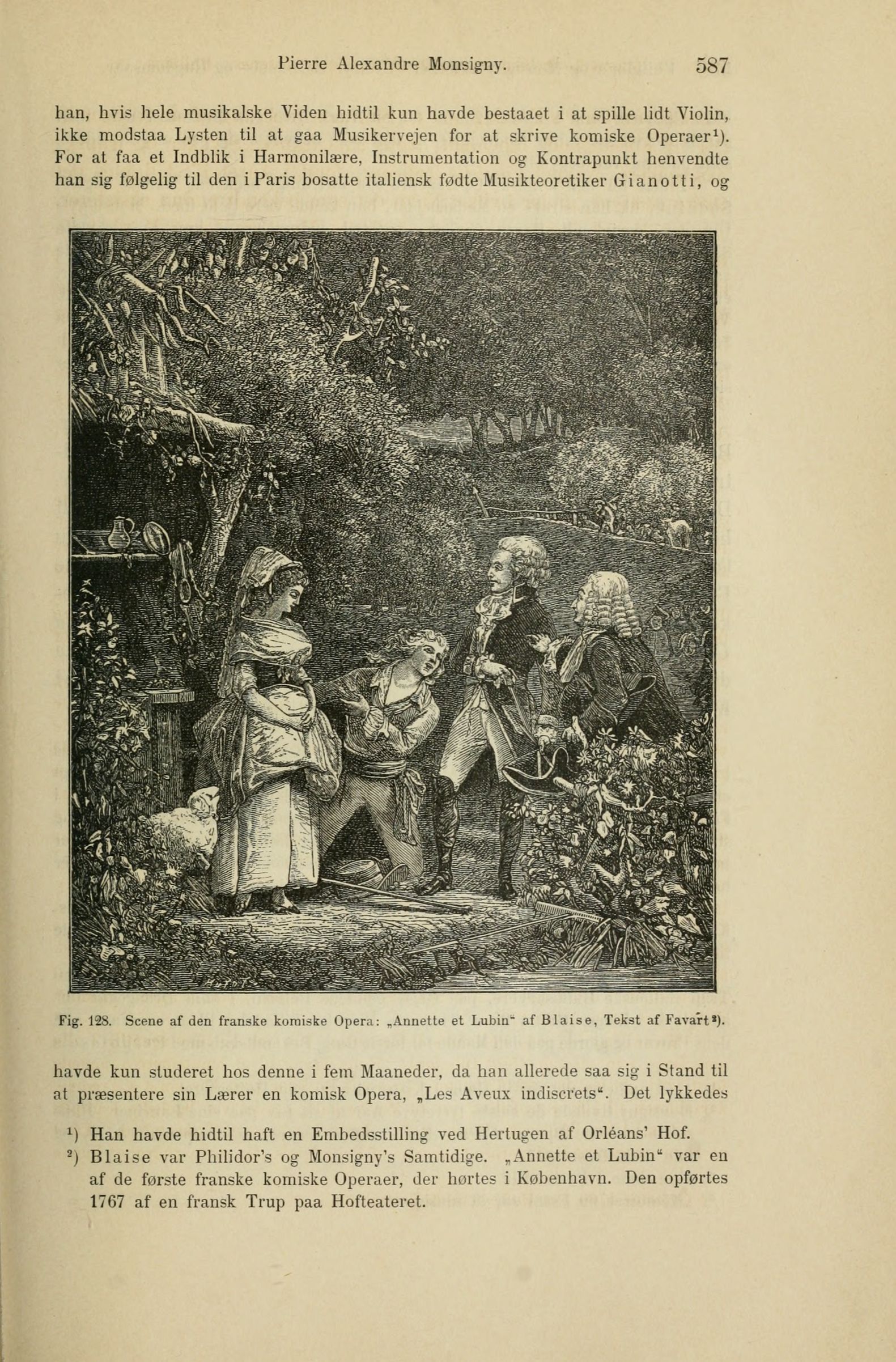 Fig. 128. Scene af den franske komiske Opera: „Annette et Lubin" af B la ise, Tekst af Favart*).