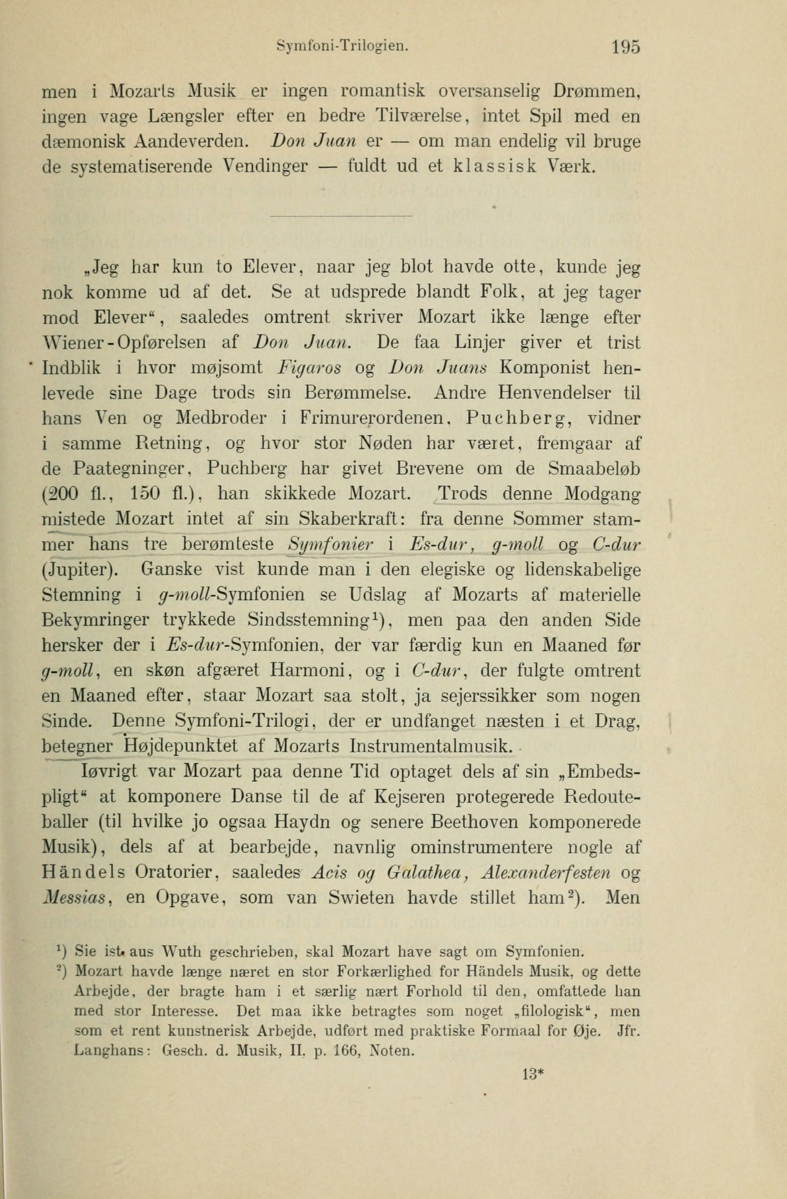 2) Mozart havde længe næret en stor Forkærlighed for Handels Musik, og dette