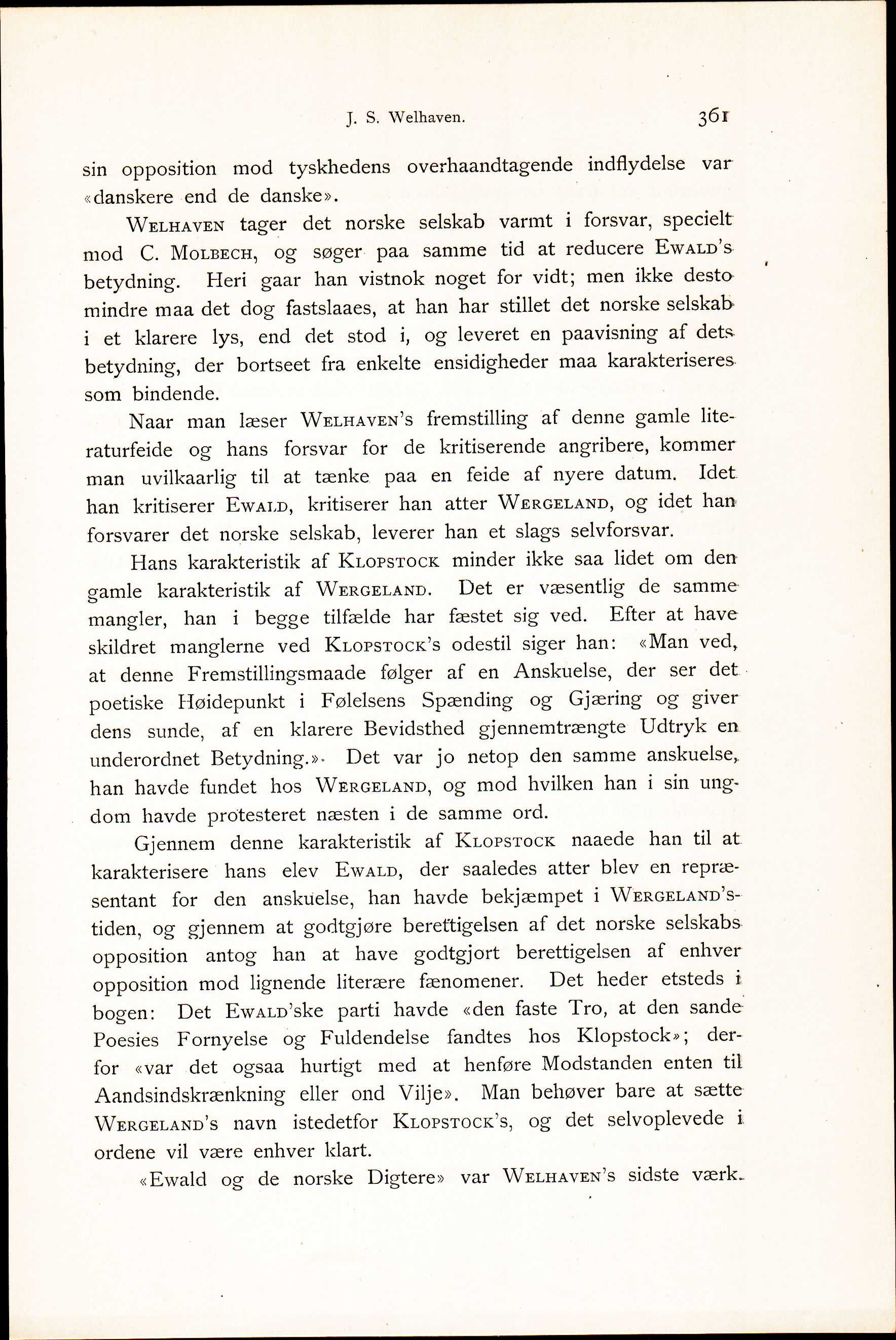 «Ewald og de norske Digtere» var WELHAVEN 5s sidste værk.