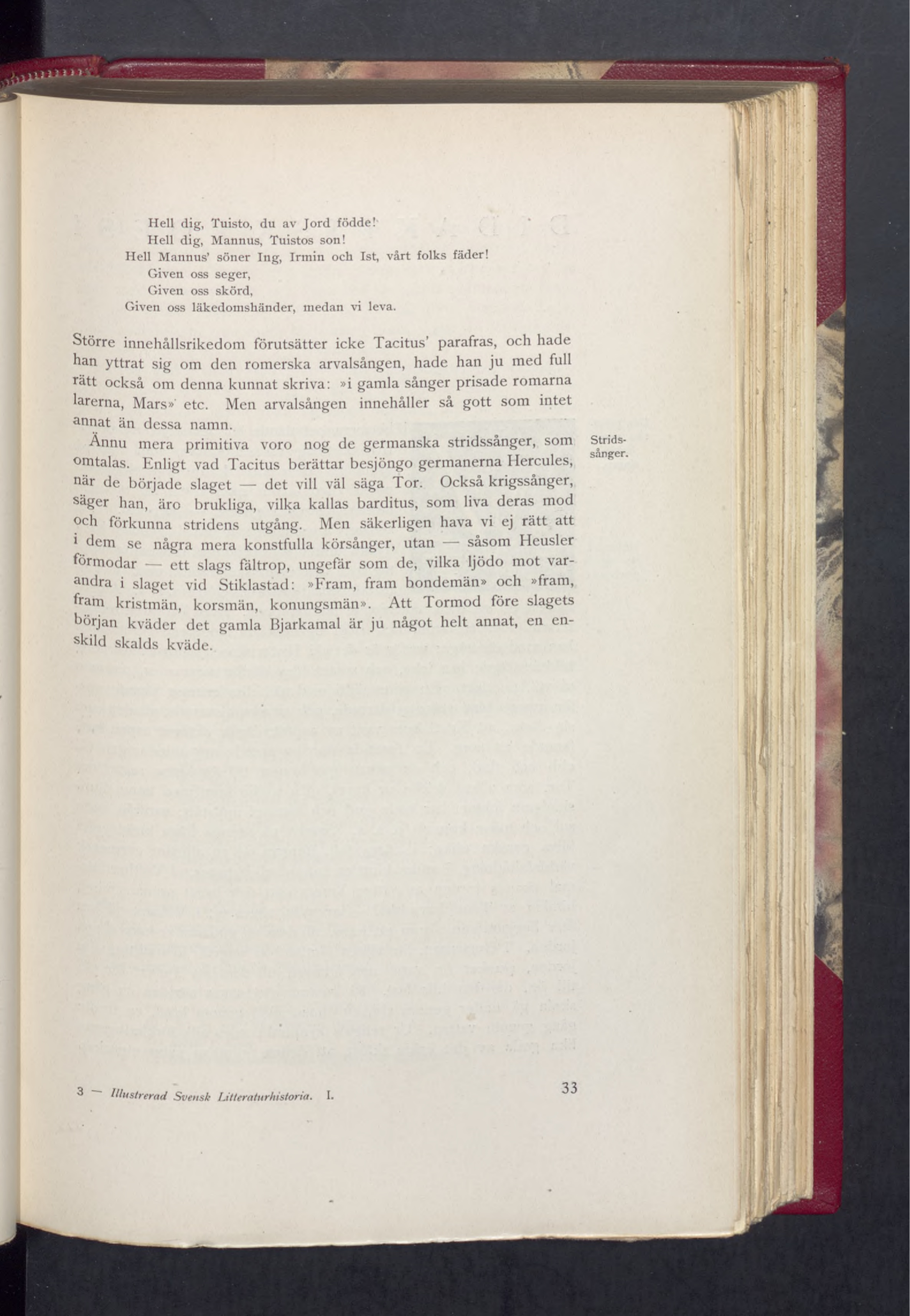 Ännu mera primitiva voro nog de germanska stridssånger, som Strids-