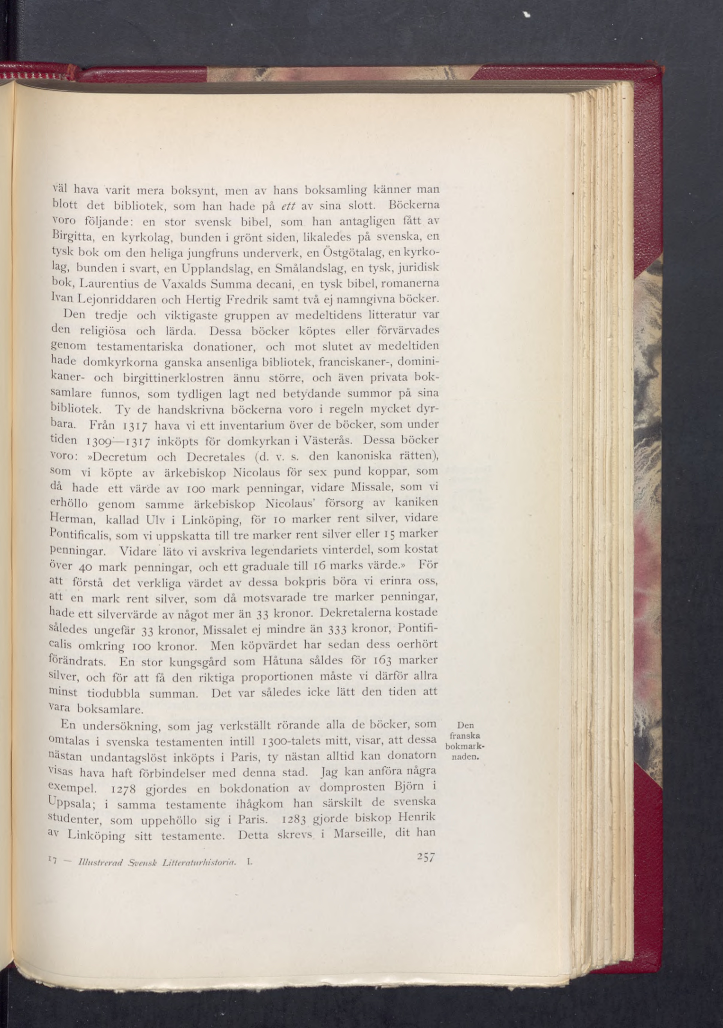 bara. Från 1317 hava vi ett inventarium över de böcker, som under